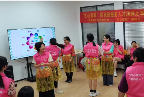 7月8日是开课的第一天,“四心家政”项目工作人员和师生们齐聚在佛山市“南粤家政”产业园会议室开始了为期6天的早期教育指导师培训班。