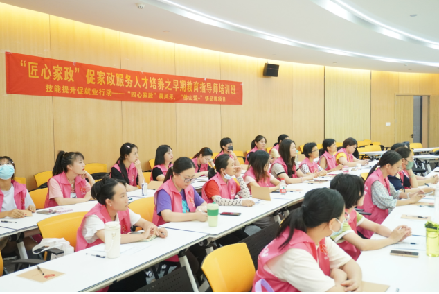 为提升佛山市家庭服务业母婴服务人才的综合服务水平及专业技能,更好地促进佛山市母婴服务业的高质量发展,解决母婴服务机构、托育机构、早教中心的用人用工需求,在佛山市三水区人力资源和社会保障局的指导下,“四心家政”项目工作人员在佛山市“南粤家政”产业园开展“匠心家政”促家政服务人才培养项目的早期教育指导师培训班。此次培训吸引了来自幼儿园、早教中心、托育机构、母婴服务家政企业的从业人员和爱好婴幼儿教育的社会人员。
