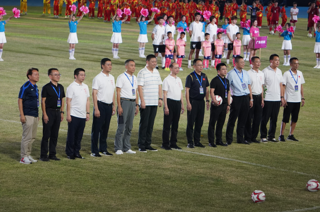 三大篇章节目结束后,与会的领导、嘉宾参与开球仪式,宣告长达两个月的足球赛事正式打响。