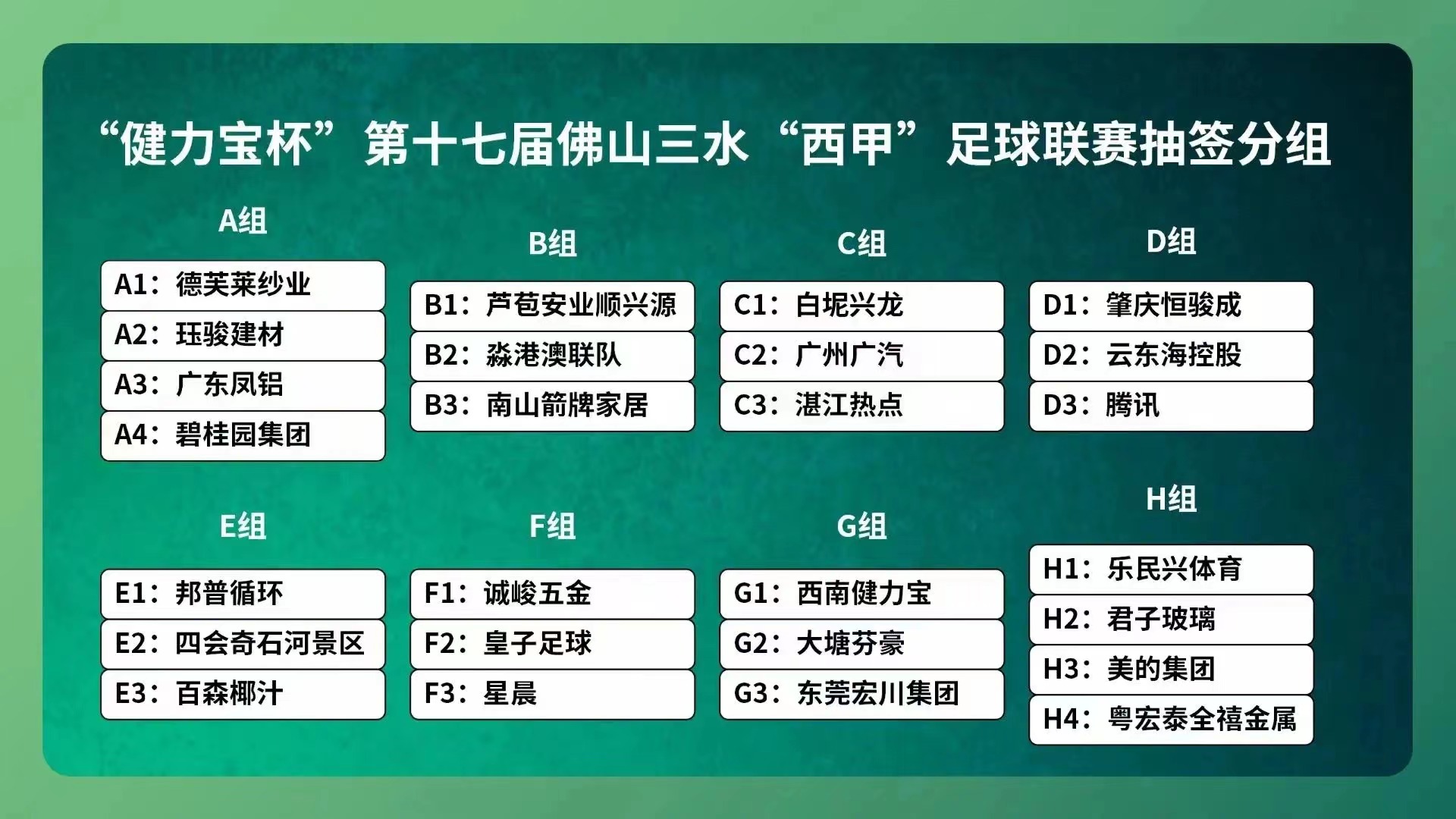 “产业味”浓郁是本届赛事的一大亮点。健力宝、邦普、凤铝、宏川等佛山市内外行业龙头纷纷组队参赛,碧桂园、美的、腾讯、广汽等多家世界500强企业更是首次出战。往届赛事强队德芙莱纱业队、乐民兴体育队、珏骏建材队再次出征,也为本届赛事增添诸多亮点。