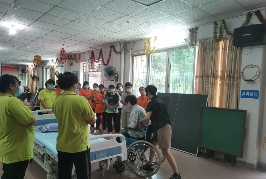 此次养老机构护理员岗前培训是根据养老护理岗位职责和养老工作实际情况,围绕老年人基础护理、生活照料、应急救护、老年人照护常用技术等方面,采用“理论授课+实训操作”方式对护理员们进行培训,通过人体力学原理运用、轮椅运送、协助更衣等实操示范,进一步提高养老护理员的护理知识储备,提升养老服务科学化、专业化、精细化、规范化水平。