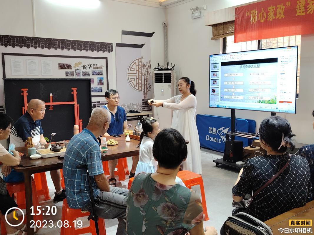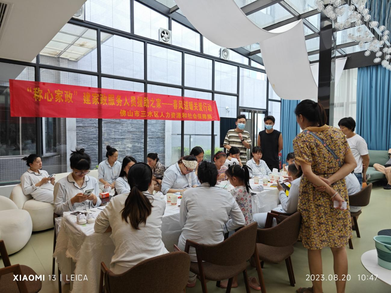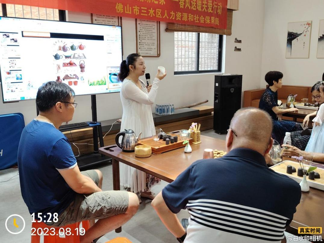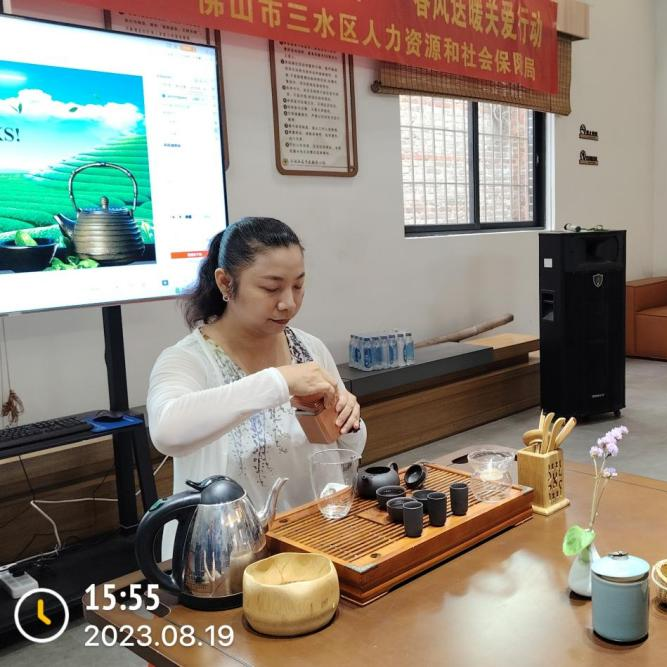 2023年8月19日下午,在佛山市三水区人力资源和社会保障局的指导下,“四心家政”项目组联合佛山市爱君家庭服务有限公司、西南街道月桂社区居委会开展“称心家政”建家政服务人员援助之家——春风送暖关爱行动系列活动之“茶艺飘香,品茗生活”茶艺课程活动,本次活动邀请了佛山市三水区爱君家政职业培训学校关小燕老师为大家讲授茶文化的知识和泡茶实操指导,活动共有18位家政服务人员参加。