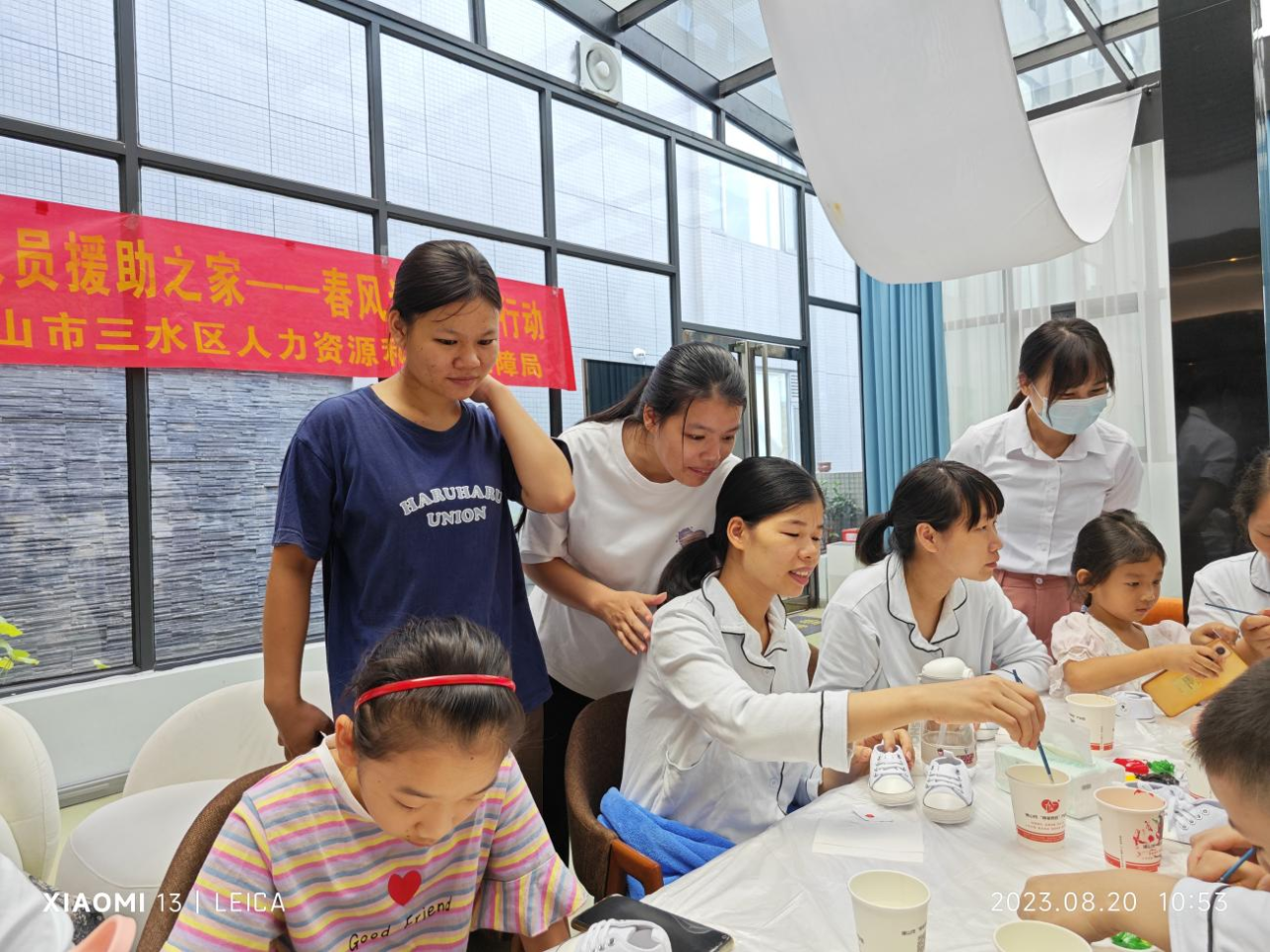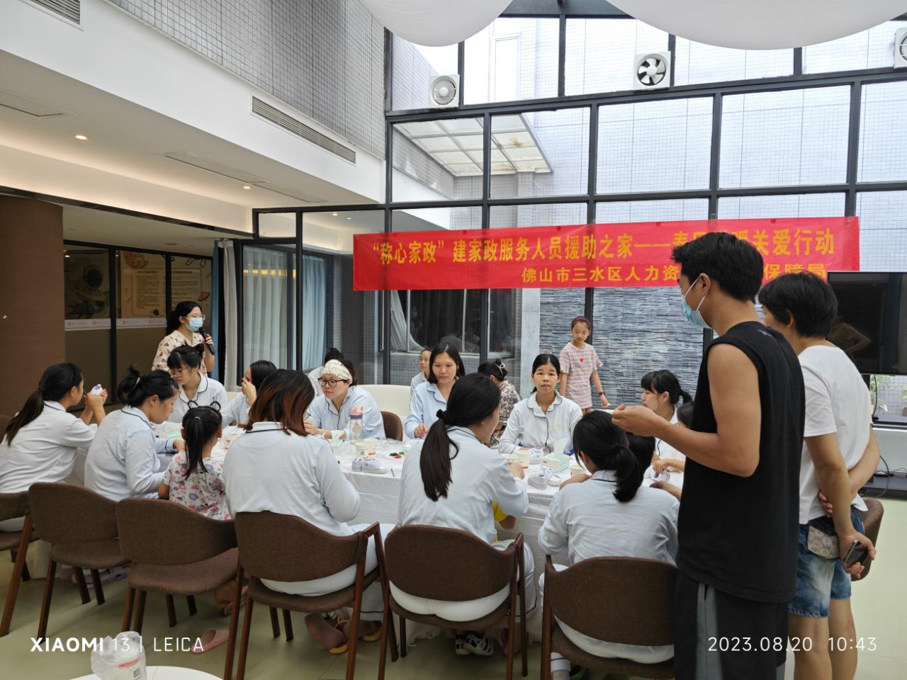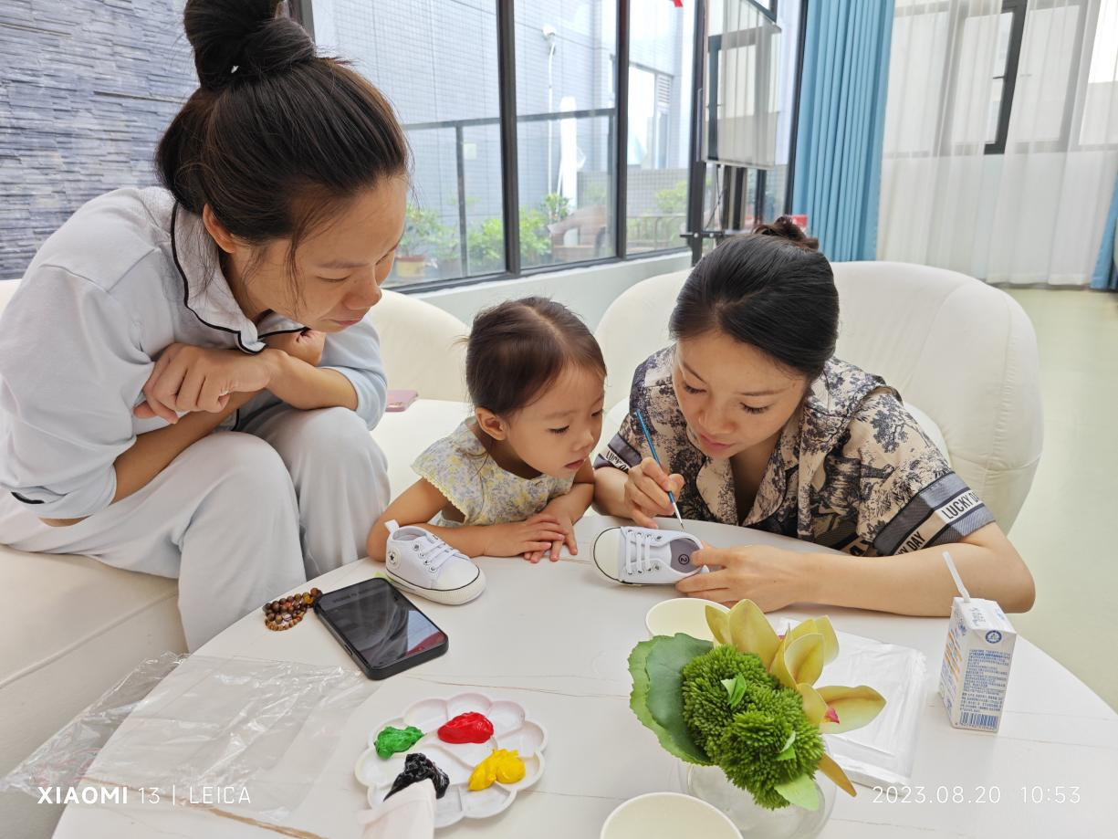 多彩生活,多彩梦,心在哪里,足迹就在哪里。2023年8月20日上午,在三水区人力资源和社会保障局的指导下,“称心家政”建家政服务人员援助之家在星尔月子中心开展春风送暖关爱行动系列活动之“不负生活,应时而画”手绘鞋子课程活动,现场共有20名母婴照护人员及产后妈妈参加。