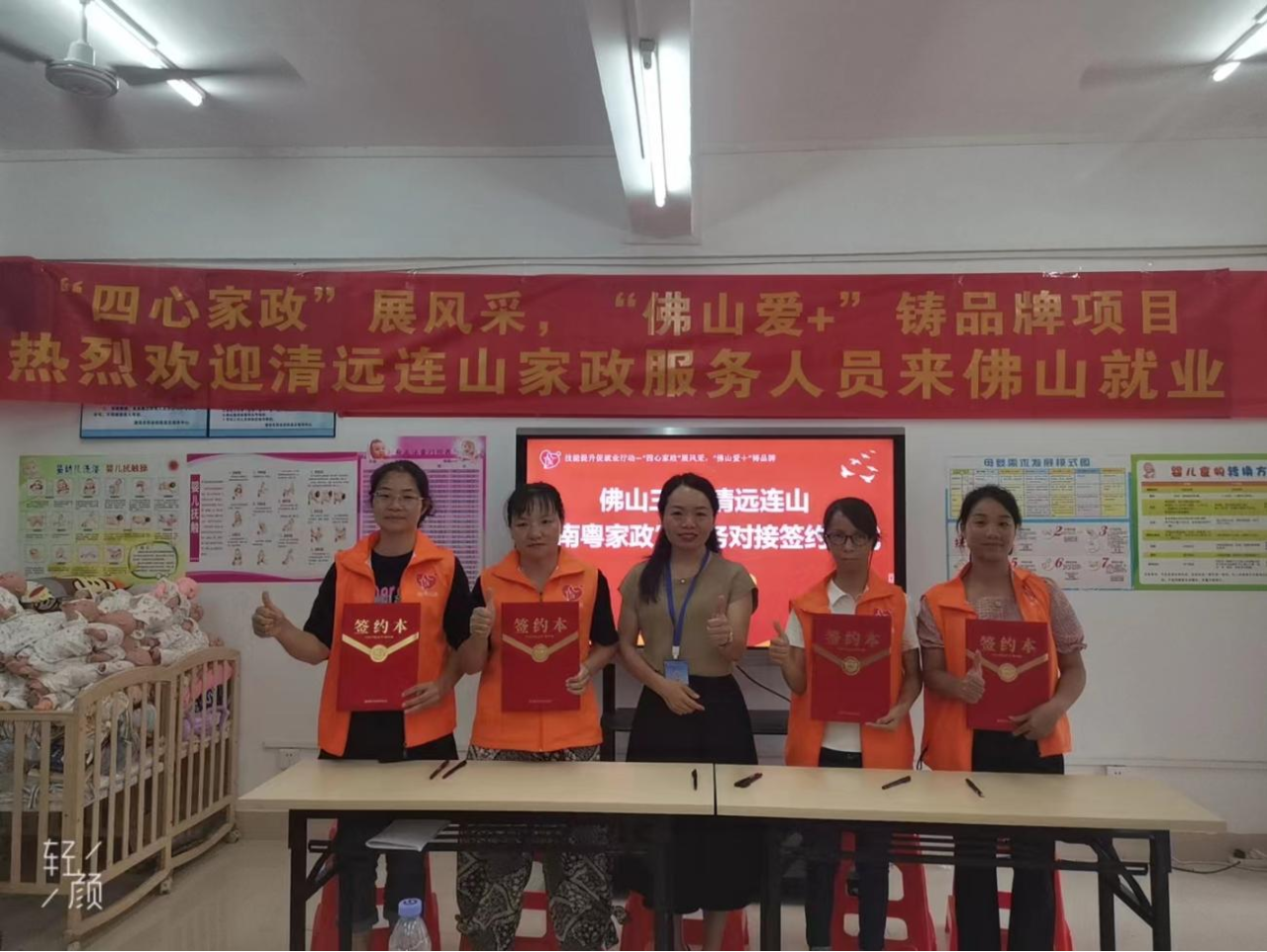 此次培训班是佛山三水和清远连山两地劳务对接合作走深走实的举措之一,提升家政服务人员职业技能和就业能力。学员们通过认真学习,学习到了有针对性、实用性的育婴和产妇护理知识,培训结束后,有15位学员成功和佛山家政服务企业签约。