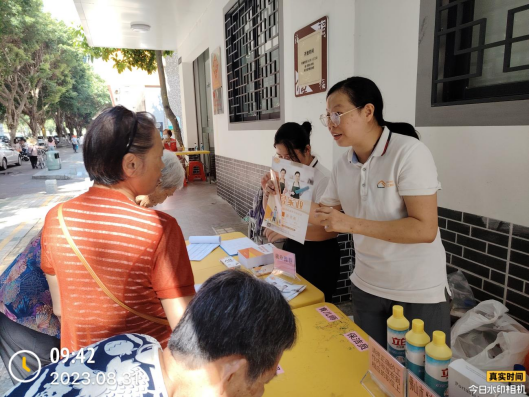 2023年8月31日上午,四心家政项目人员联合三水区西南街河口居民委员会、佛山市三水区力工养老服务中心、佛山市爱君家庭服务有限公司、南方医科大学程卫东教授课题组、佛山爱尔眼科医院有限公司、广澳口腔、绍兴市顺耳听力技术设备有限公司佛山分公司在佛山市三水区“南粤家政”基层服务示范站(河口站)开展主题为“关注记忆,关注老年脑健康”的老年护理社区便民服务活动,让辖区内群众了解更多家政服务信息和提高居民的老年护理意识,当天共有70余名居民参与活动。