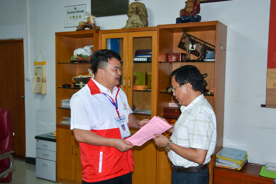 “您好!我们正在开展第五次全国经济普查单位清查工作,现在需要对贵单位情况进行了解和登记。这既是政府开展经济普查的工作需要,也是企业应尽的义务和责任,请您积极配合我们的工作,提供真实准确的信息,我们会严格保密,感谢支持!”在佛山市浩琻新材料有限公司和佛山市三水鸿发机械五金厂,芦苞镇第五次全国经济普查领导小组总督长、镇长黎锦标向企业负责人派发《第五次全国经济普查单位清查告知书》,宣传开展第五次全国经济普查的重要意义,并询问了企业生产经营、发展规划等情况。