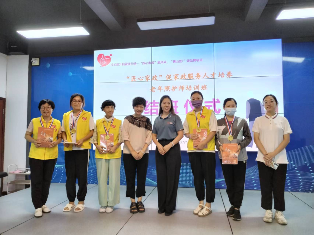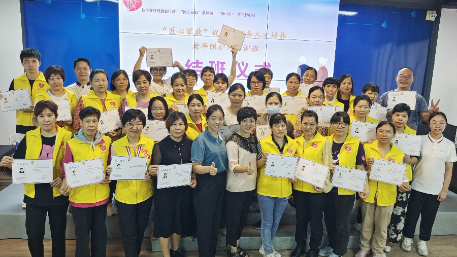 为进一步加强佛山市养老服务人才队伍建设,满足日益多样化的养老服务需求,佛山市“南粤家政”产业园在佛山市三水区人力资源和社会保障局的指导下,开展为期5天的第三期老年照护师培训,共38名学员参与此次培训,并于9月10日进行了理论和实操考核,给成绩合格的学员颁发了培训结业证书以及为优秀学员颁发了奖牌和奖品。