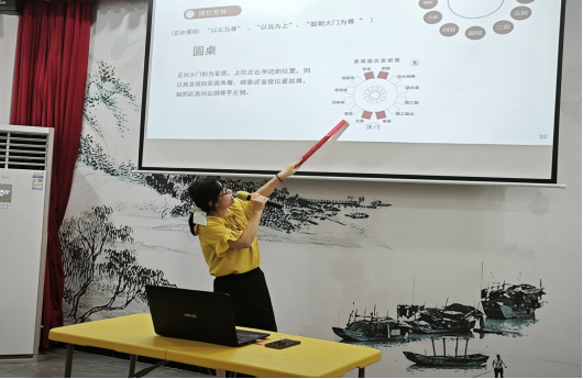 培训邀请到三级家政服务员、高级育婴员林聪老师授课,从家政服务人员仪容仪表、体态训练、接待礼节、沟通礼仪、餐桌礼仪等方面进行介绍。林老师通过图片展示、视频播放、实操训练让参与者明白“工作时穿统一工作服装,仪表整洁,这是家政服务人员最基本入户规范”“到达客户家时轻声敲门,对客户及其家人态度友善,面带微笑,这是微笑服务”“上桌讲究排位,上菜顺序按照凉菜、热菜、大菜、上汤、点心、青菜、水果,这是餐桌礼仪的基本”……