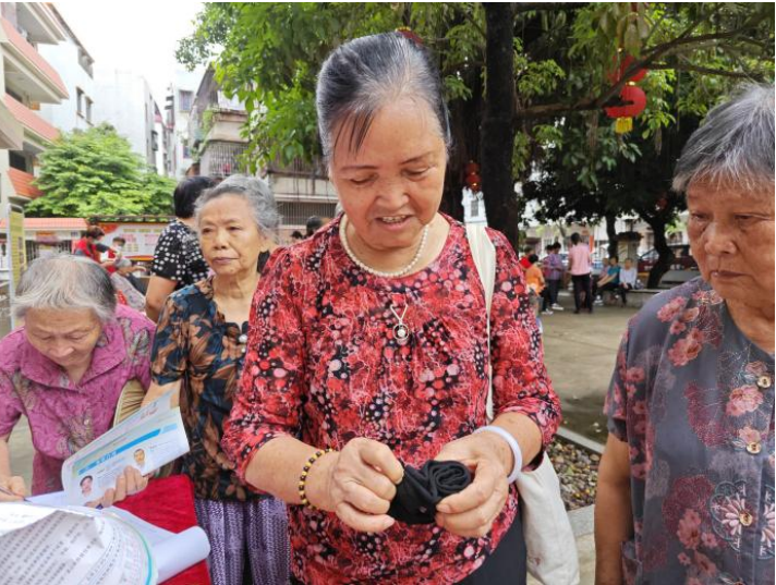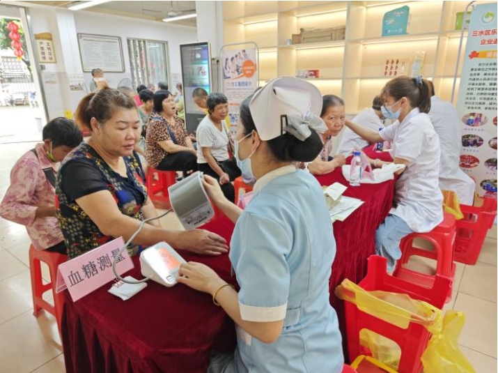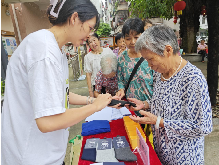 老年护理便民区域为居民提供耳穴贴服务、血糖测量、血压测量等义诊服务和义剪服务,提醒居民平时需做好身体健康管理及日常健康护理工作。
