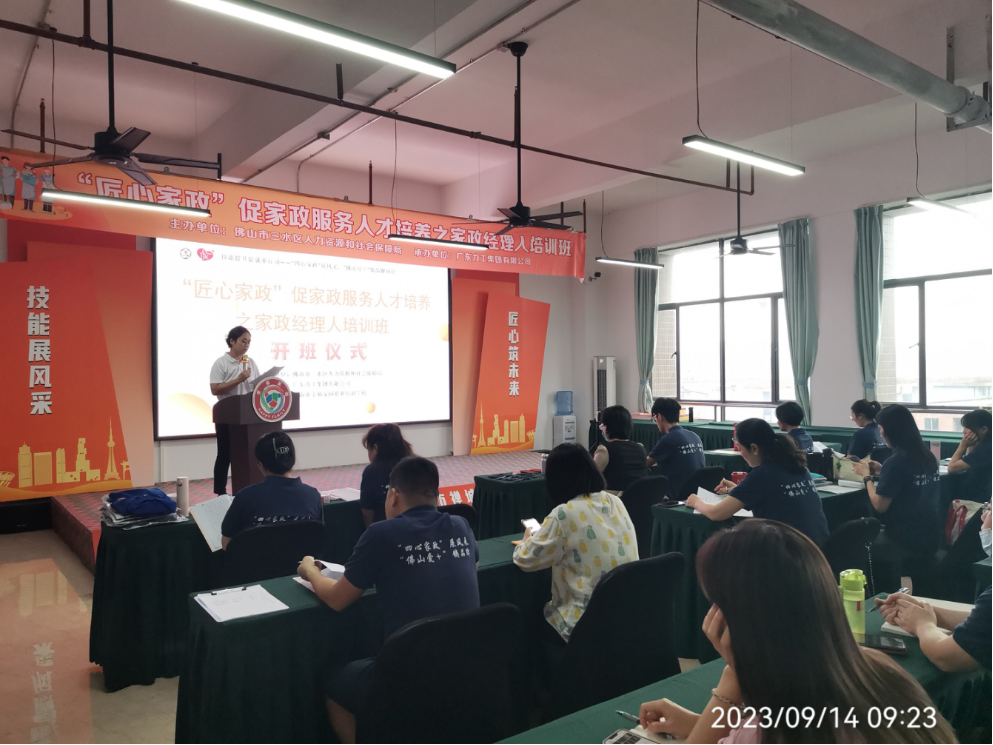 9月14日,由佛山市三水区人力资源与社会保障局主办、广东力工集团有限公司承办的“匠心家政”之家政职业经理人能力提升培训班(第二期)在佛山市幸福家园职业培训学校正式开课。