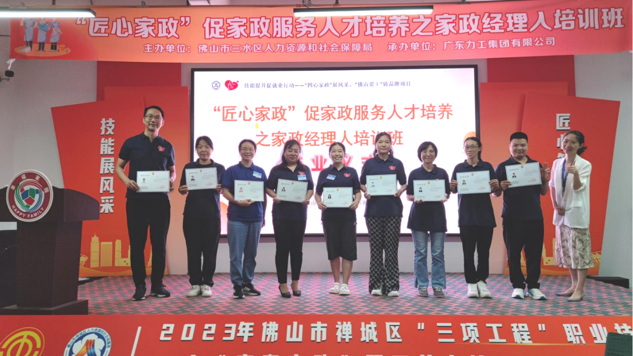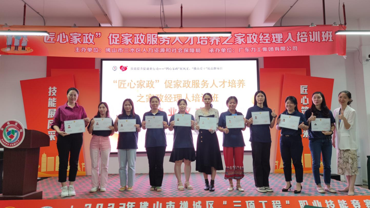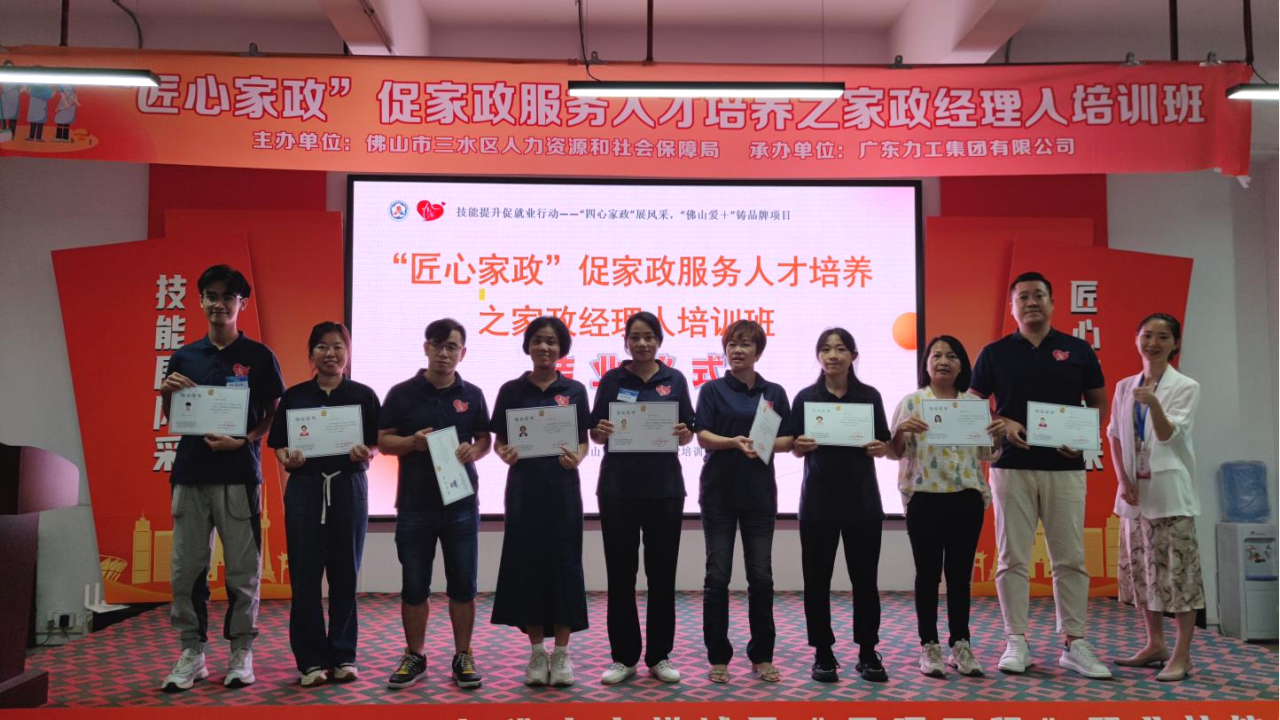 为促进家政服务高质量发展,提升家政经理人的管理水平和业务能力,9月14日-9月17日,由佛山市三水区人力资源与社会保障局主办、广东力工集团有限公司承办的“匠心家政”之家政职业经理人能力提升培训班(第二期)画上了圆满的句号。