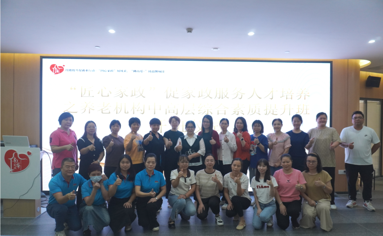 为切实加强养老机构人才队伍建设,全面提供养老机构管理人员素质,大力提升养老服务机构规范化、精细化管理水平和专业化服务水平,不断提升养老服务质量,加快推动佛山市养老服务业健康快速发展,2023年9月16日上午,佛山市“南粤家政”产业园在佛山市三水区人力资源和社会保障局的指导下,开展“四心家政”展风采,“佛山爱+”铸品牌项目的“匠心家政”促家政服务人才培养项目。首期佛山市养老机构中高层管理人员素质提升培训班开班仪式圆满召开,正式拉开了为期4天的专业培训序幕。