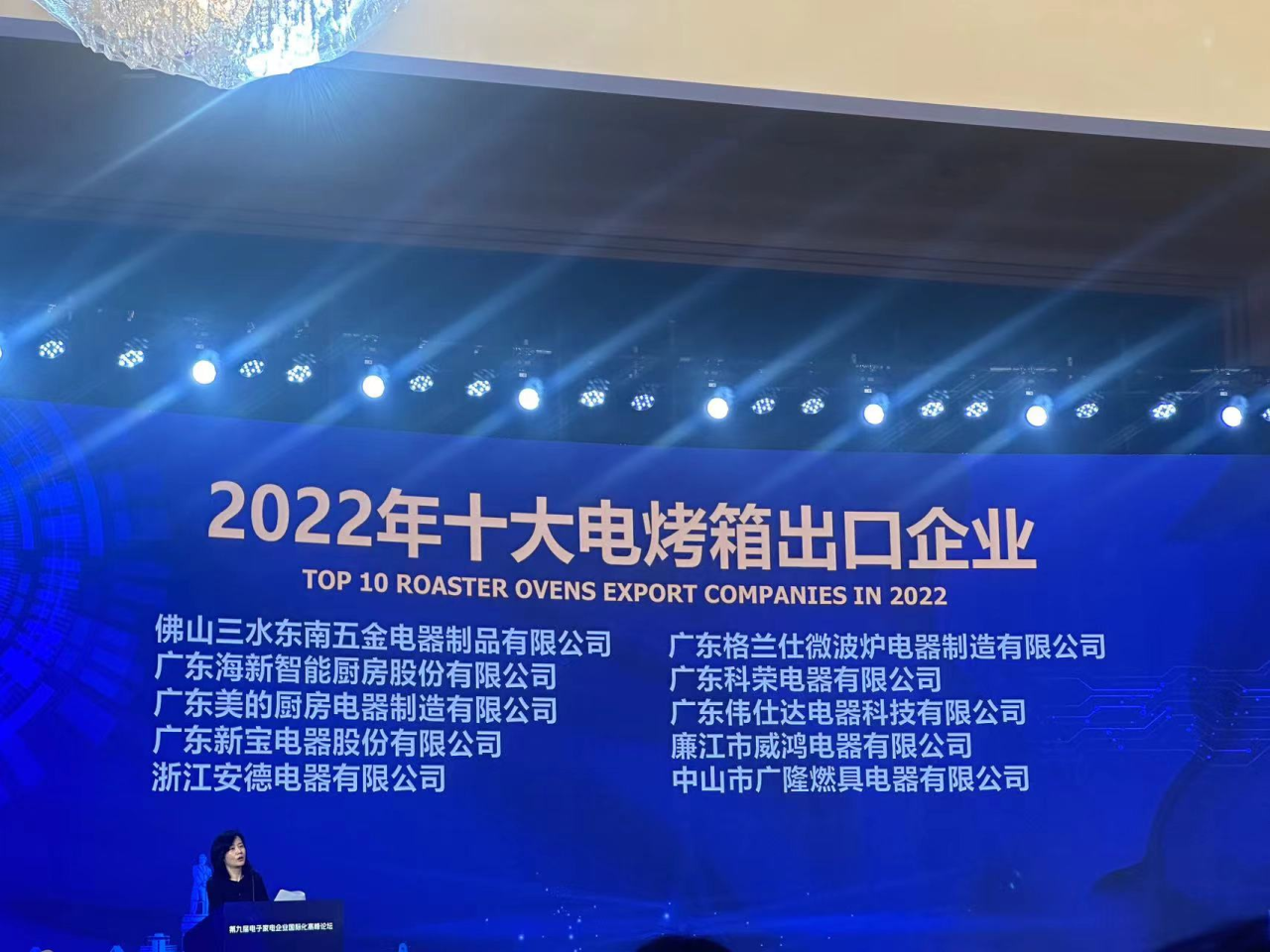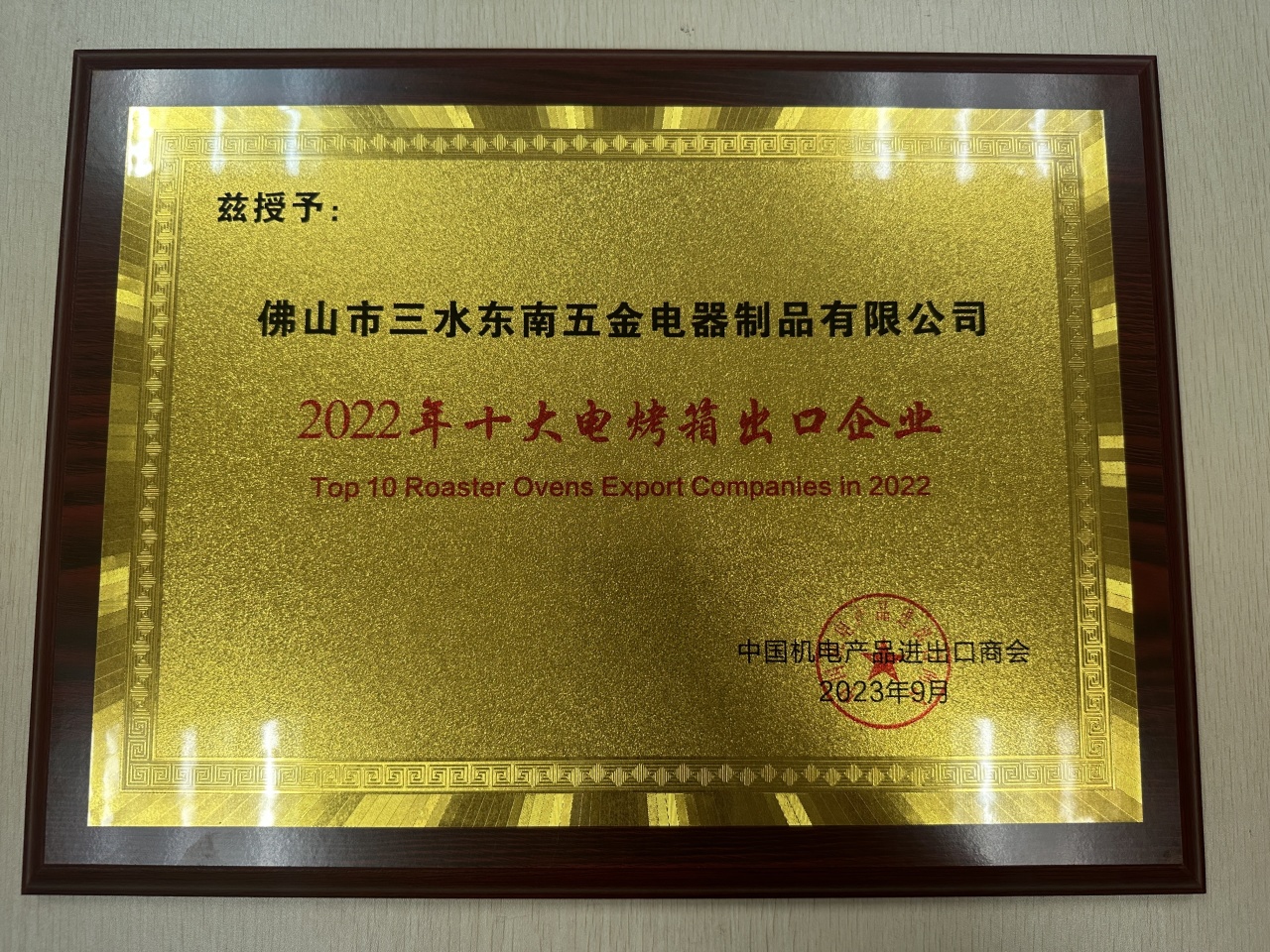 9月22日上午,第九届电子家电企业国际化高峰论坛暨电子家电出口百强发布仪式在中山市举行。主论坛期间,中国机电产品进出口商会发布了电子家电产品出口百强企业名单,位于西南街道的佛山市三水东南五金电器制品有限公司(以下简称“东南五金”)获评“2022年十大电烤箱出口企业”。