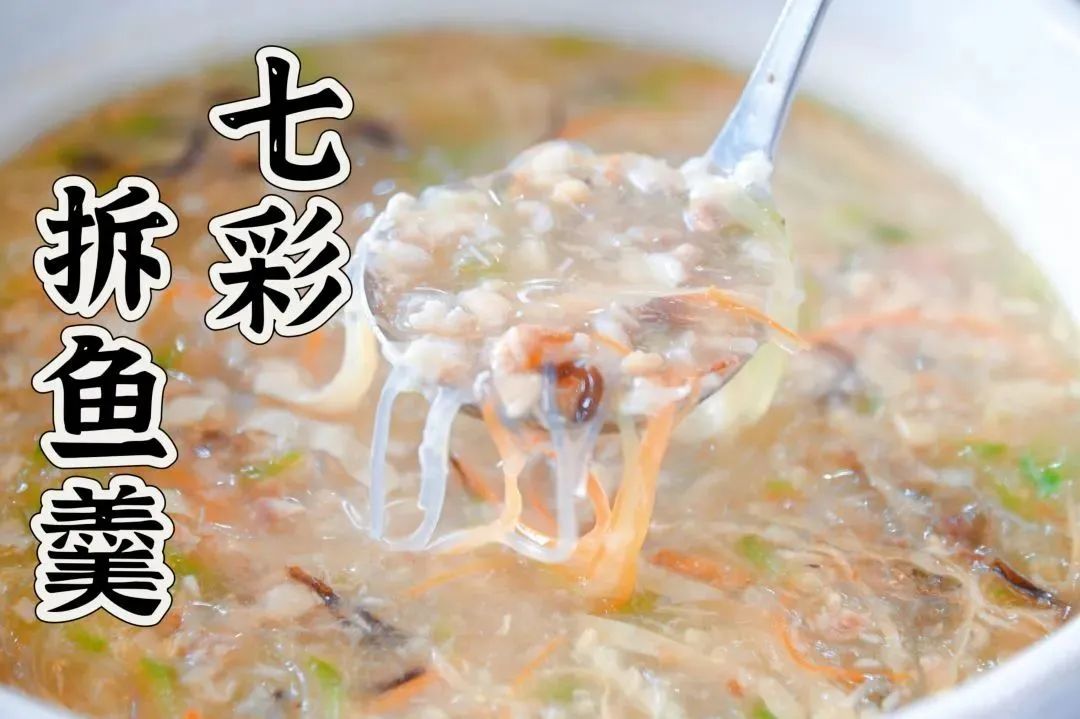 这是一道已经传承了上百年历史的汤品,是“一鱼八味”的头菜,食材选用其它七味剩下的一些鱼骨料,在锅中煎香,拆鱼骨做成鱼蓉,然后把鱼骨熬汤,加入鱼蓉、胡萝卜丝、丝瓜丝、木耳丝、冬菇丝、陈皮丝、粉丝及柠檬叶丝等配料,最后勾上薄芡。此菜式口感绵密爽滑,粗料精作,吃得鱼味不见鱼形。