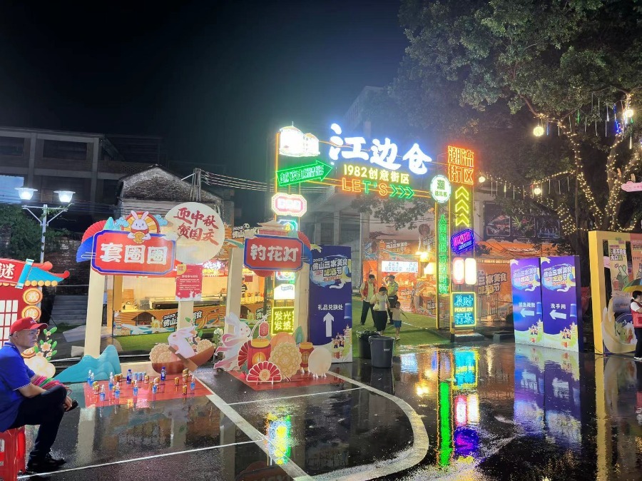 三水啤酒广场原为“西南水厂”,自1970年建成到2018年停运,西南水厂引北江水服务老城区半个世纪。南面文创街区由建于1982年的江边仓改建而来,历史上的江边仓借北江、西江水运调储粮食,见证了三水在上世纪七八十年代成为广东四大粮仓之一、人均上调国家商品粮全省之首的辉煌。而对面的人民体育场始建于1966年,依云秀山山体建成,自8月5日西甲开赛以来,已举办42场比赛,超30万人次入场观看,云秀片区夜市客流量超54万人次。通过老城焕新、城市更新,云秀片区已经从历史上的临江据高点、农贸重镇,成为今天独具三水记忆的文商旅服务区、人气集聚区,未来也将打造成为三水饮料食品工业的集中展示区、体验区。