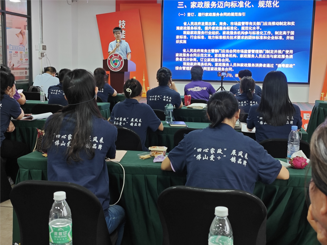 为切实做好家政行业普法宣传工作,全面提升家政服务行业从业者的法律认知水平,促进家政服务行业规范健康发展,在佛山市三水区人力资源和社会保障局的指导下,“四心家政”项目工作人员分别在2023年9月15、28日开展了两场法律普法活动,主题分别为《广东省家政服务条例》普法、养老机构常见法律纠纷实务案例分析,旨在提升家政从业人员对家政服务法律法规的认知水平,提高家政行业人员的风险防范意识和服务水平。