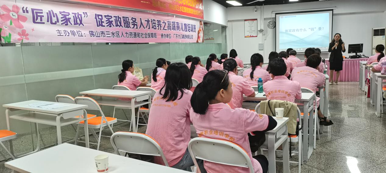 2023年10月15日上午,由佛山市三水区人力资源和社会保障局主办,广东力工集团联合佛山市三水区家庭服务业协会共同开展“匠心家政”促家政服务人才培养之高级育儿嫂(第四期)培训班。