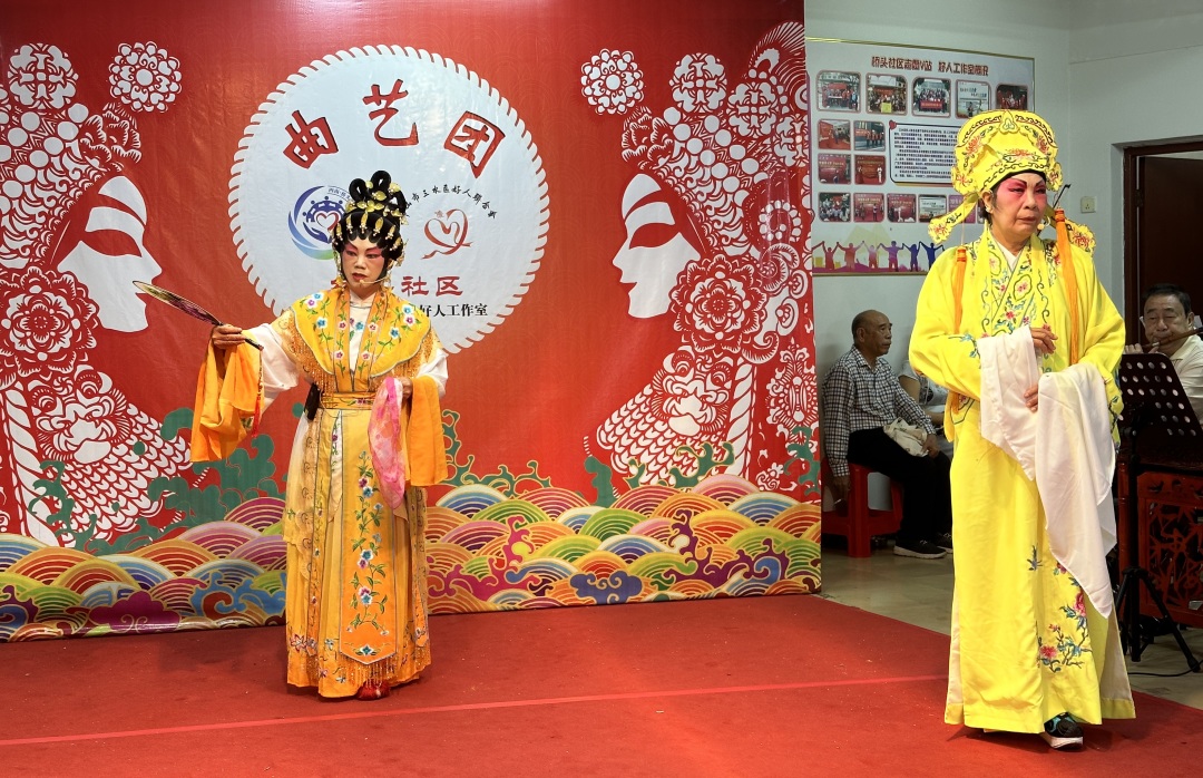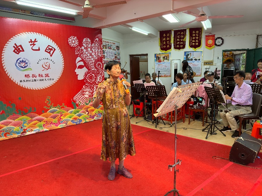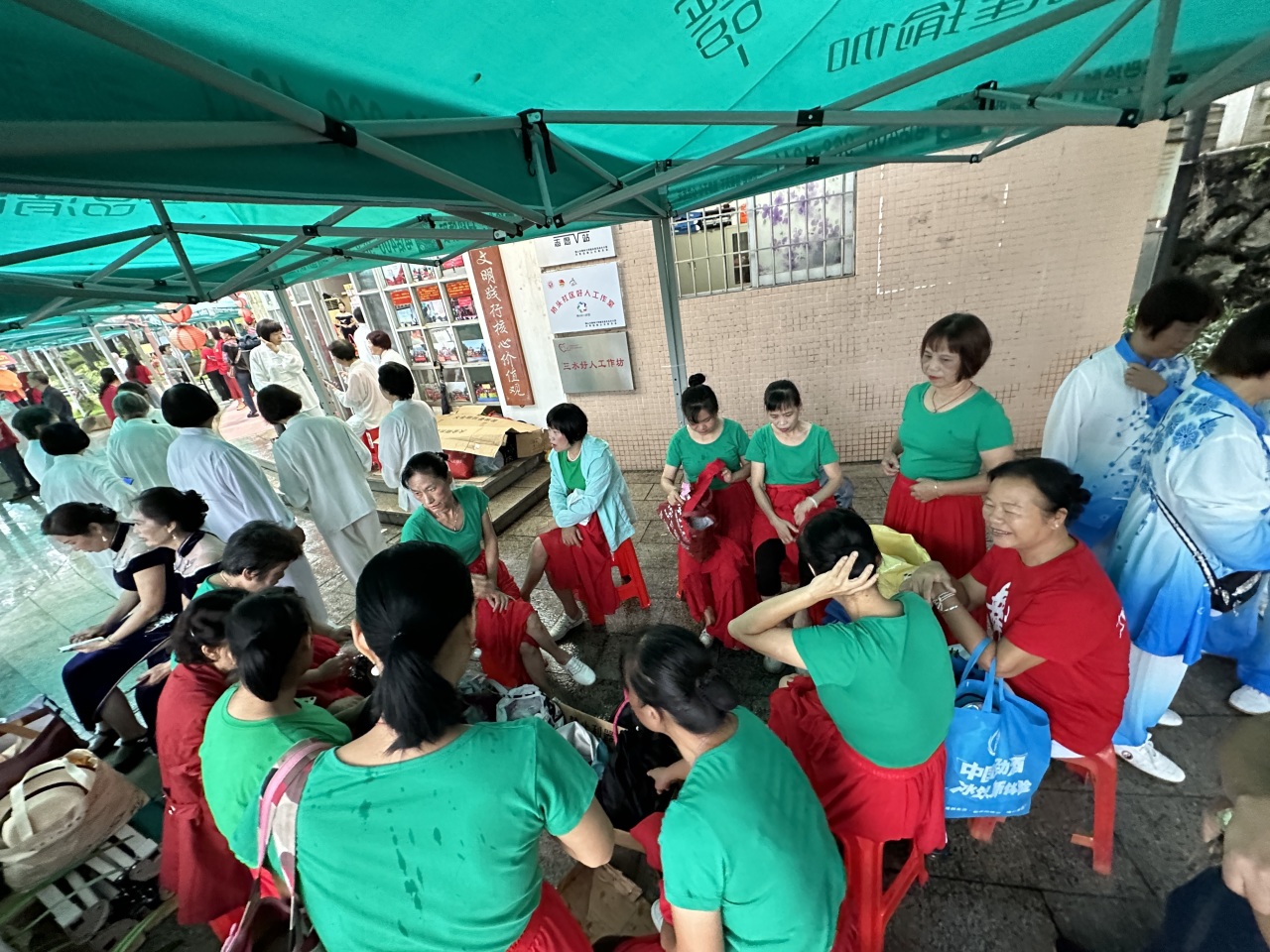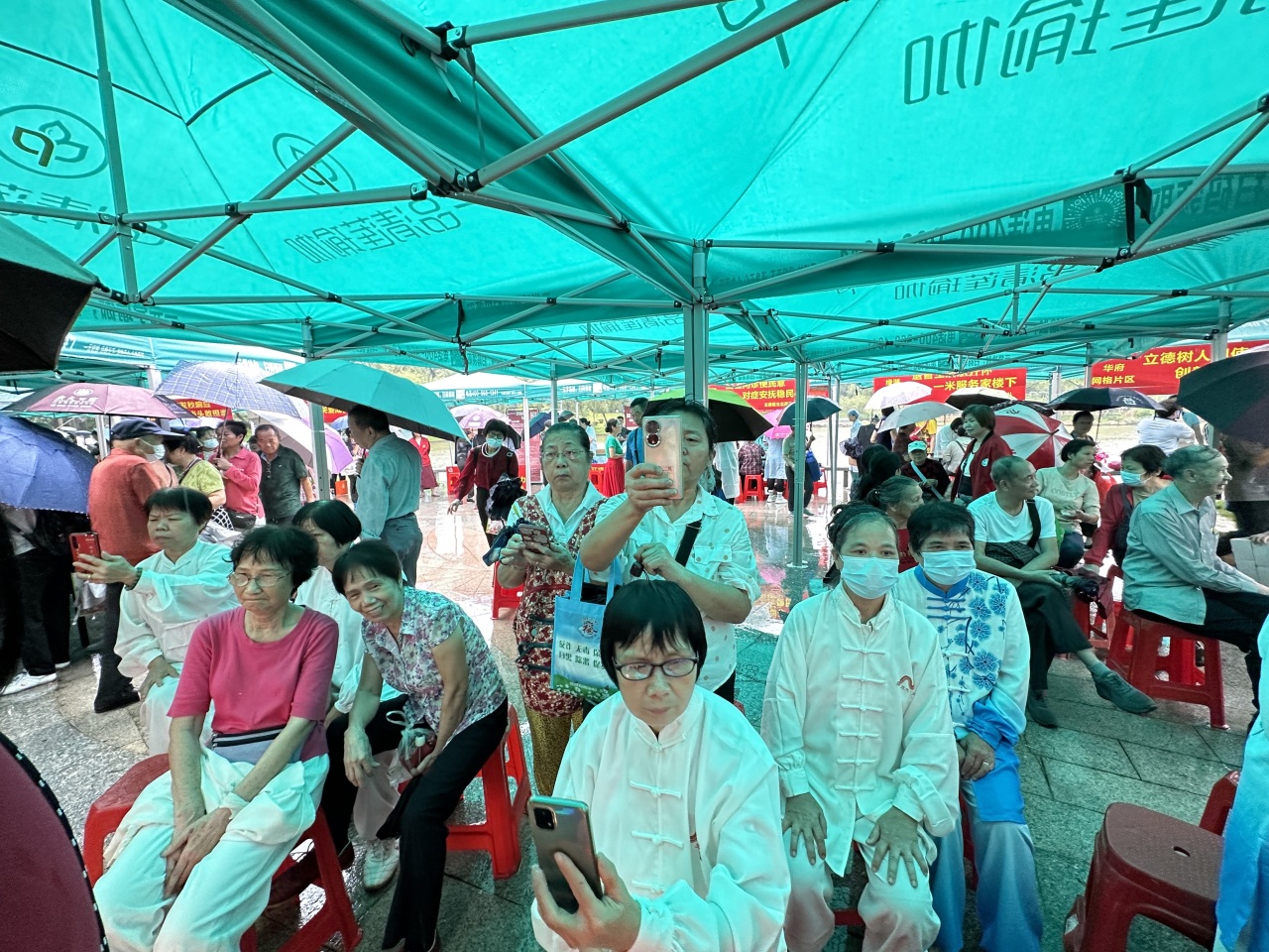 活动当天,现场的气氛非常热烈。在主会场,老人们欣赏了精彩的粤曲表演、旗袍走秀、太极表演、舞蹈以及书法等养老小站学员的学习成果展示。他们纷纷表示,这些表演充分展现了桥头社区的文化底蕴和居民的才艺风采。表演过程中还有不定时抽奖电饭煲、挂历、面……幸运的尖叫声一次次降临。本次活动全程采取视频号线上直播的方式,供未能亲临现场的群众欣赏。