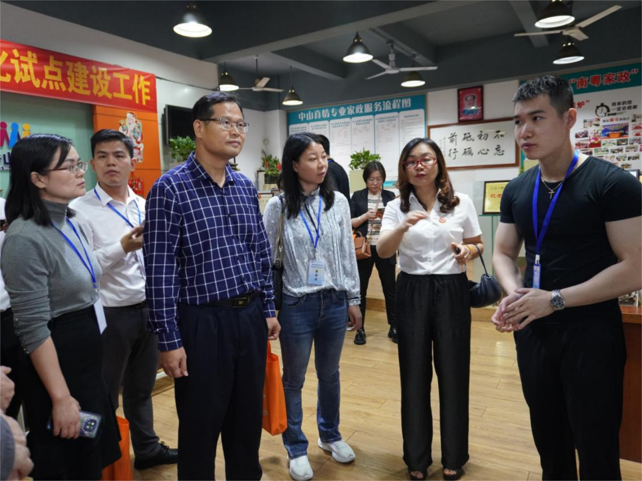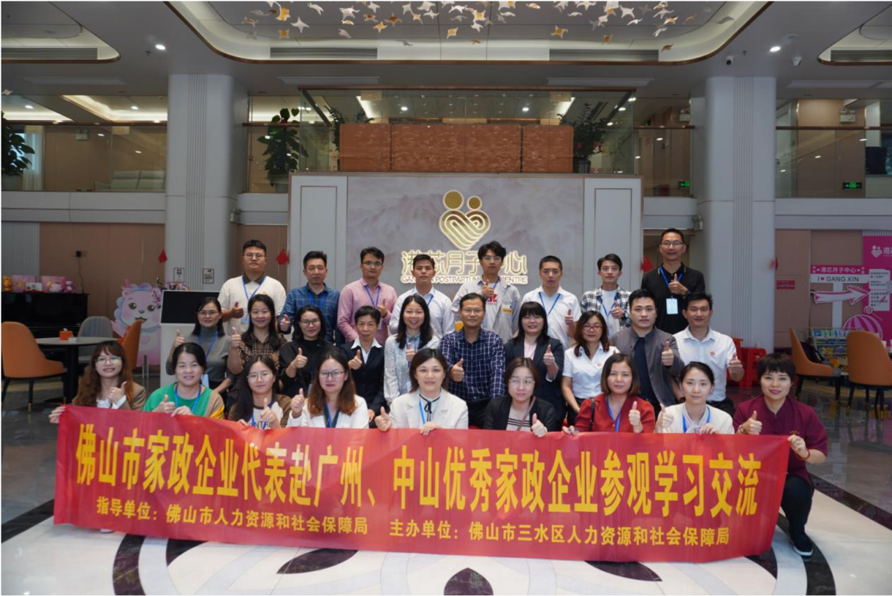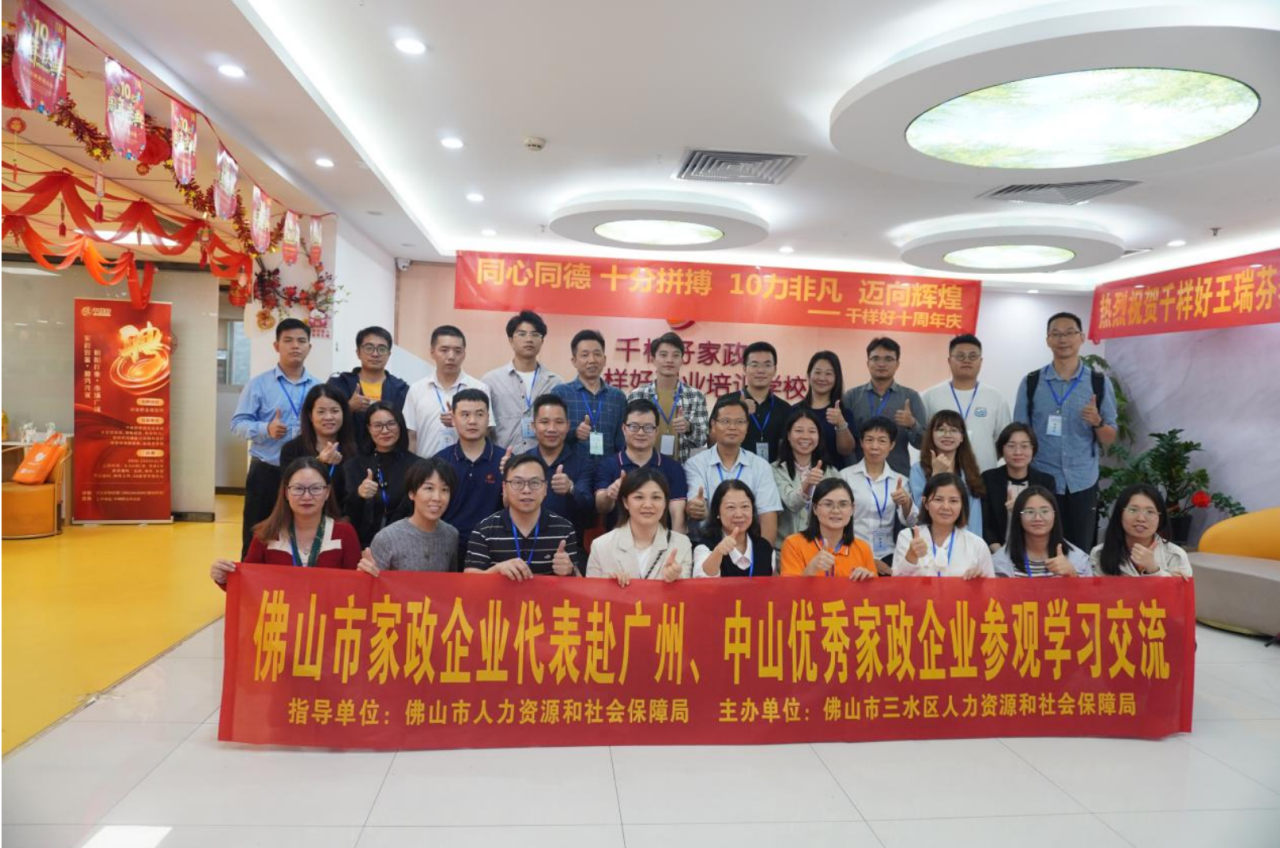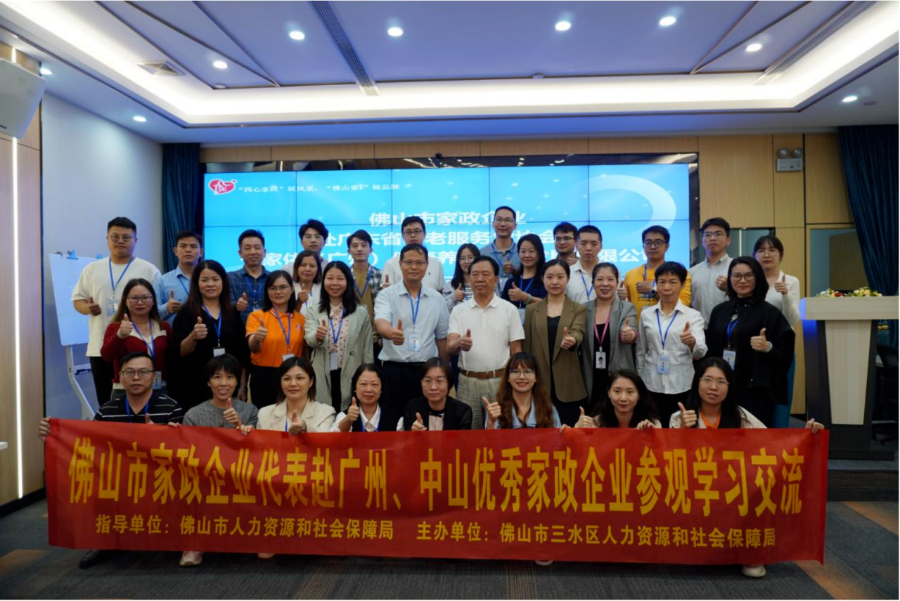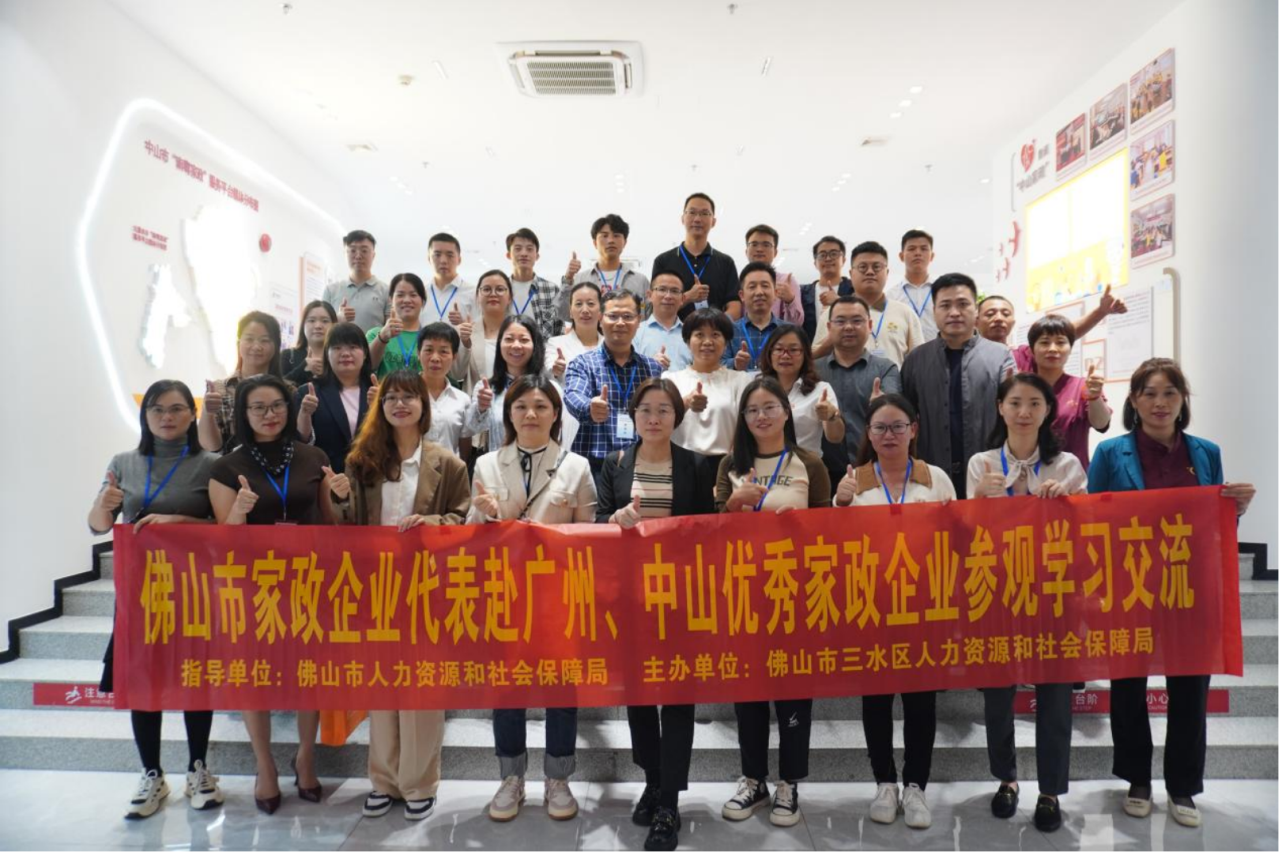 为进一步推进技能提升促就业行动——“四心家政”展风采,“佛山爱+”铸品牌项目的落地实施,2023年10月19日至20日,佛山市三水区人力资源和社会保障局副局长莫玉添带领佛山五区25家家政企业代表共32人分别到广东省养老服务业协会、一家依(广州)健康养老产业发展有限公司、广州千样好家庭服务有限公司、中山市“南粤家政”产业园、中山市真情家庭劳动服务有限公司、中山市红珊月嫂服务公司参观学习交流经验。