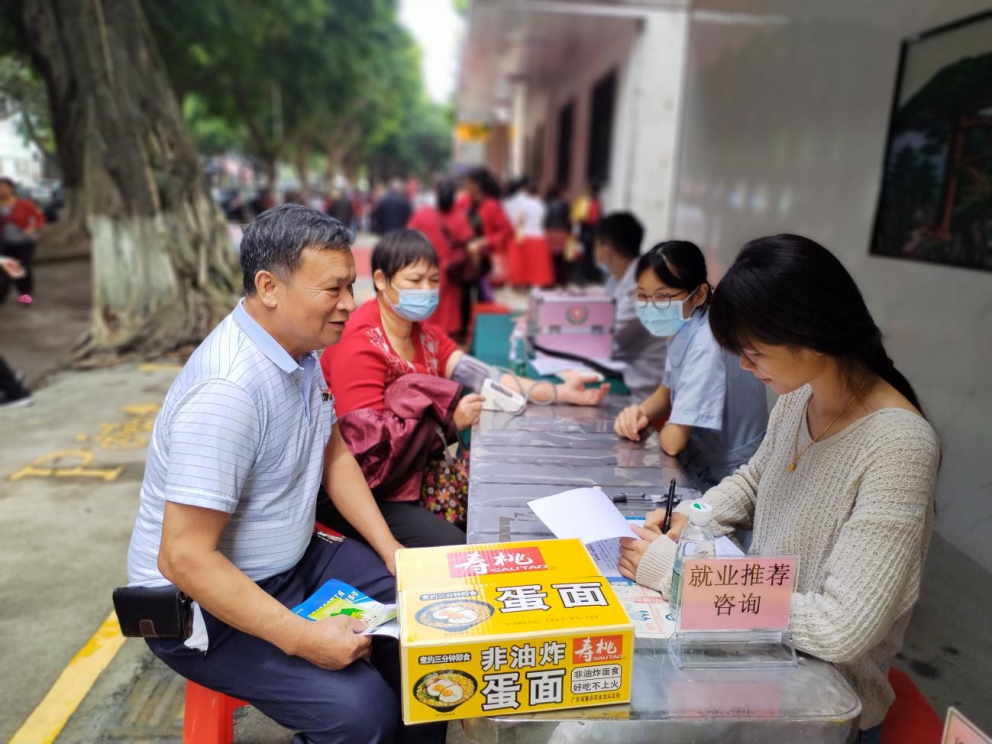 在三水区人力资源和社会保障局的指导下,2023年10月23日上午,四心家政项目工作人员联合西南街道河口社区居民委员会、三水区增康颈腰椎医院、西南街道河口社区新时代文明实践站,在三水区“南粤家政”基层服务示范站(河口站)开展“爱满重阳,情暖金秋”重阳节为主题的系列活动。让辖区内群众了解更多家政服务信息和提高居民的老年护理意识,当天吸引了多位居民参与。