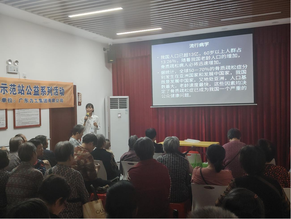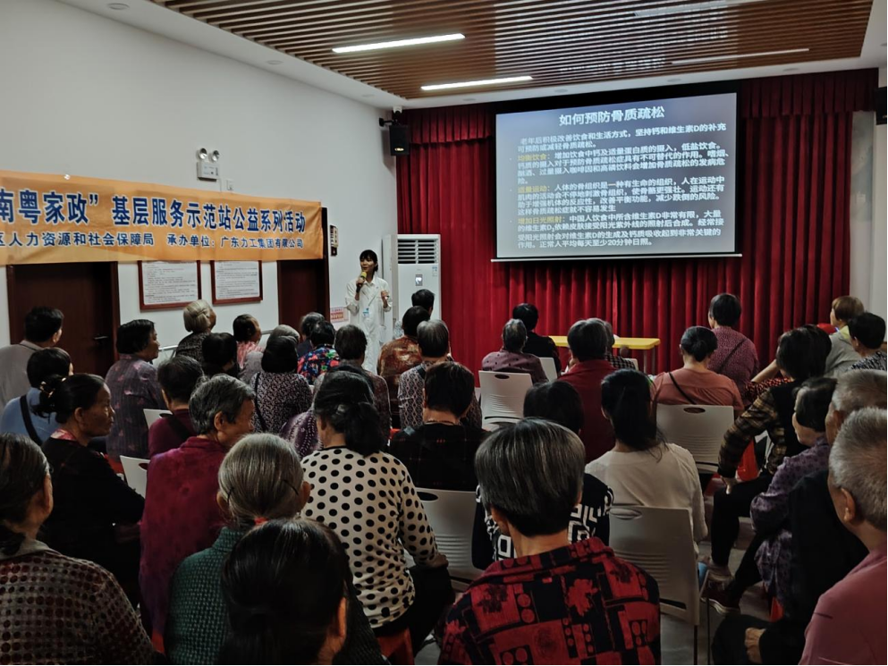 近年来随着人口老龄化社会的推进,骨质疏松症已经成为威胁中老年人健康的主要疾病之一。为了提高中老年人与照护者对骨质疏松症的防治认识,10月24日上午,在三水区人力资源和社会保障局的指导下,“四心家政”项目工作人员在佛山市三水区“南粤家政”基层服务示范站(河口站)开展“老年骨质疏松的预防及护理”健康养老护理公益知识讲座。活动邀请了三水区增康颈腰椎医院的专业医生来为大家讲解。