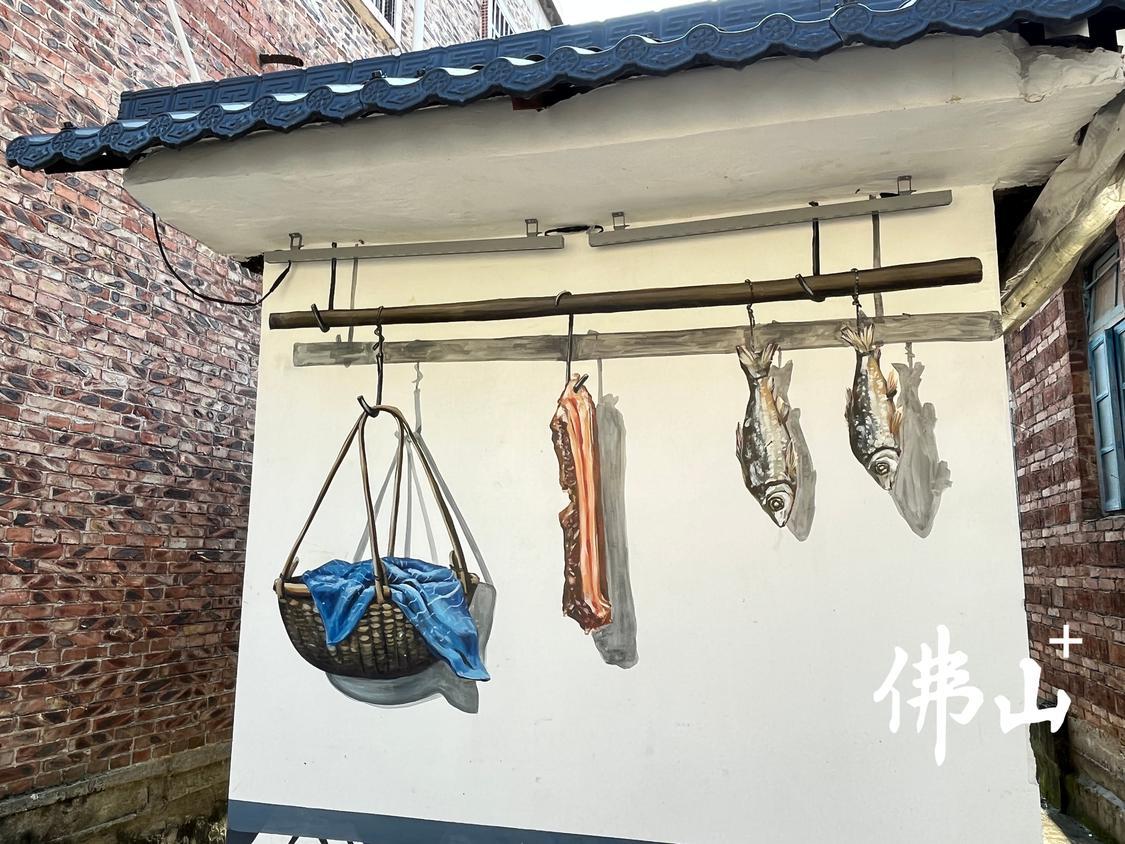 五顶岗村一角,墙画艺术突显水上人家风情。