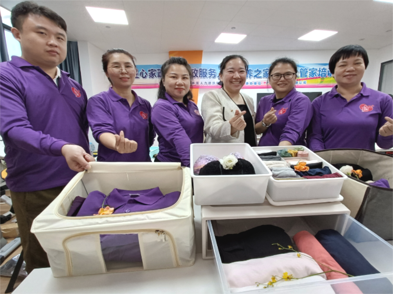 随着社会经济的不断发展,对家政服务业高端人才的需求更加旺盛,为加强家政行业高素质人才队伍建设,推动技能人才存量、增量双提升,促进家政服务提质扩容,助推家庭服务业实现高质量发展,2023年10月27日-30日,由佛山市三水区人力资源和社会保障局主办,广东力工集团承办的“匠心家政”促家政服务人才培养之第一期家庭私人管家培训正式开展。本期有20多名学员参与,他们被誉为“高端家政御林军”,将成为中国新一代高端家政服务的骨干种子选手,未来将为家庭私人管家职业的发展贡献重要力量。