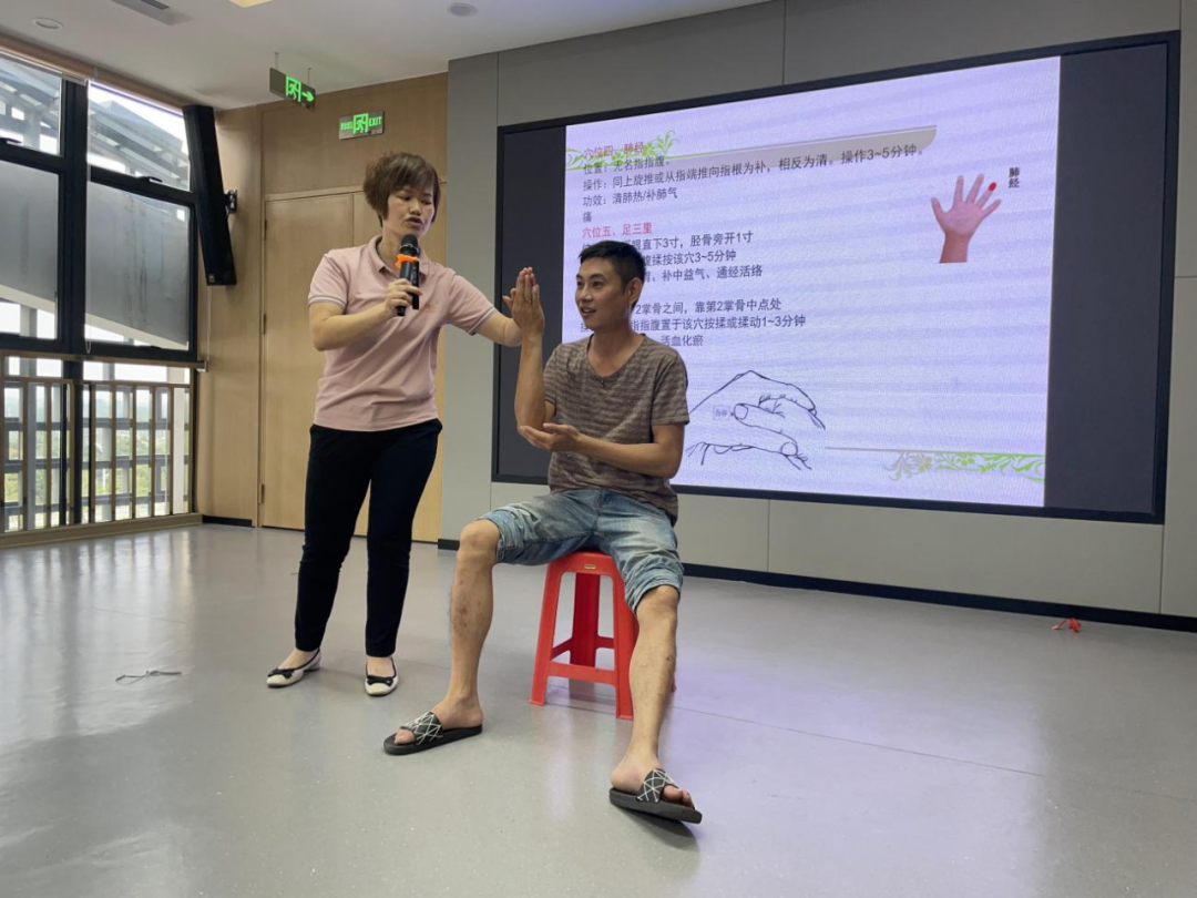 本次培训内容涵盖了小儿推拿基本作用原理、主要调理案例、小儿推拿常用操作手法等多个方面。活动中凌凤珍老师通过“望、闻、问、切”的方法向居民们分享小儿推拿的日常经验,如怎样判断小孩的体质,怎样调理鼻炎等,并对小儿推拿的优势进行讲解。