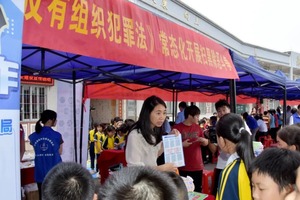 而在室外,平安建设宣传也在如火如荼的进行中,各种小游戏和小礼品吸引着同学们在摊位前排队学习玩耍。首当其冲的禁毒摊位上,一款款毒品仿真模型、一句句知识讲解让同学们“温故知新”;扫黑、反诈、普法等摊位也在不断向同学们输送实用知识,充实生活经验,提高在遇到突发事件时的反应、处理的能力。