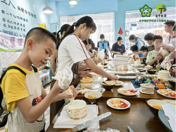 为丰富乐平片区亲子家庭的生活,提高儿童的动手能力,鼓励儿童在活动中大胆表现自我,充分感受成长的幸福,日前,乐平社工点“双百社工”携手志愿者,组织15组亲子家庭,在爱楠甜品店开展“快乐童年、生日快乐”乐平片区儿童集体生日会DIY活动。