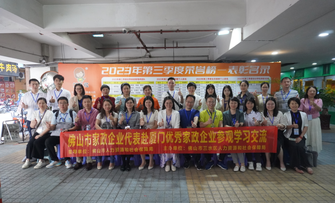 11月5日-11月8日,在佛山市三水区人力资源和社会保障局副局长黄丽琼的带领下,我市20家家政企业代表一行27人开启了“厦门经验”求学之路,切实推动技能提升促就业行动——“四心家政”展风采,“佛山爱+”铸品牌项目落地实施,引导我市家政企业规范化、标准化、品牌化发展。学习组实地参观走访了厦门市五家优秀家政企业:厦门好邦伲家政服务有限公司、厦门到家互联科技有限公司、厦门好慷家政服务有限公司、厦门小羽佳家政股份有限公司,以及厦门孕育年华家政服务有限公司,与企业进行了深入的座谈交流,此外,还与厦门市家协及其30家企业代表进行了深入的沟通和讨论。