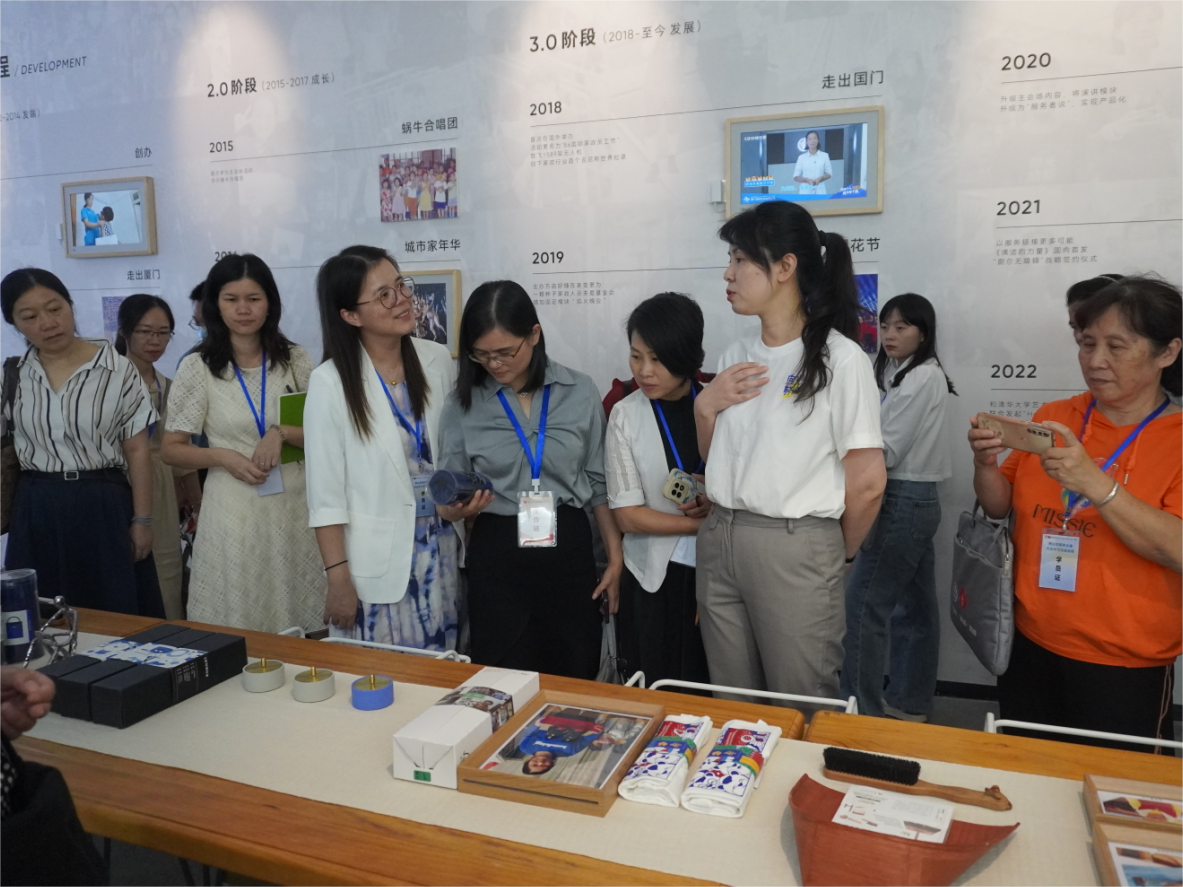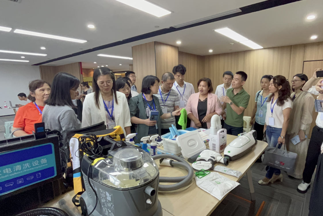 一下车,大家就被好慷总部大楼所震撼。在总裁特助徐美华的带领下,大家参观了好慷在家的乐业楼,独栋大楼、优越敞亮的办公环境和极富品味的设计空间及布局,好慷独有的“扫把图书馆”、“86国际家政员工节”展厅、“好慷家政”产品走廊、标准化培训实训场室,让参访家政企业代表惊喜连连。让大家对好慷在家人文关怀,服务理念、家政工种的细化和创新、产品研发、人员培训,标准化服务等方面有了更深的了解与认识,刷新了大家对家政的局限和认知,原来家政行业也是可以年轻化和高大上的。目前,好慷家政服务已覆盖全国34个城市,累计拥有13000+名员工制服务人员,连接了800万家庭用户,是我国家政头部企业,家政服务业的“航母”。在其发展的13年中,好慷家政服务有限公司致力于推动家政职业化进程,为行业开创职业服务工种、研发专业服务工具。同时,好慷家政服务有限公司通过线上线下的方式整合服务资源,输出了标准化产品体系、培训体系、管理体系,成功探索了以互联网思维经营、管理家政企业的新模式。