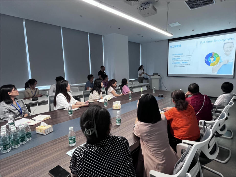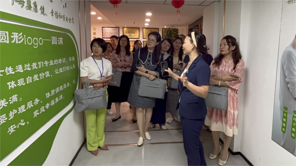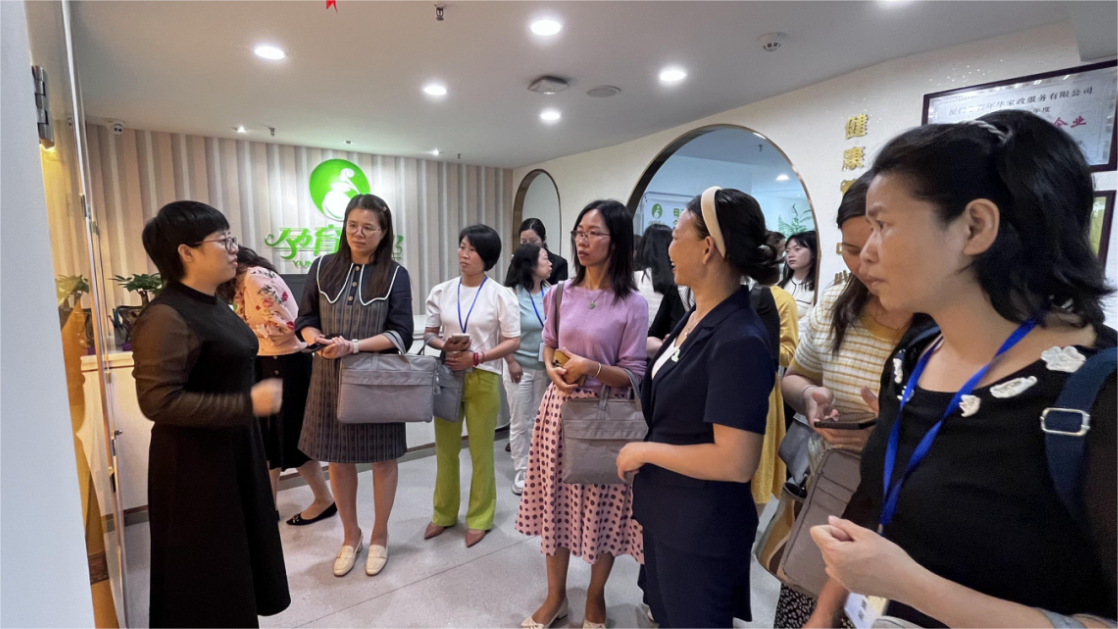 学习组参观了厦门孕育年华家政服务有限公司的小儿调理中心、体质调理中心并介绍特色母子同调使用的绿色产品及母婴护理、月子餐制作等家政实训场地,听取创始人林总创建孕育年华的初心、logo设计理念意义及经营模式介绍,重点学习其专注母婴健康,深挖医养护调相结合,“6+1”全方位月子服务等特殊服务内容。