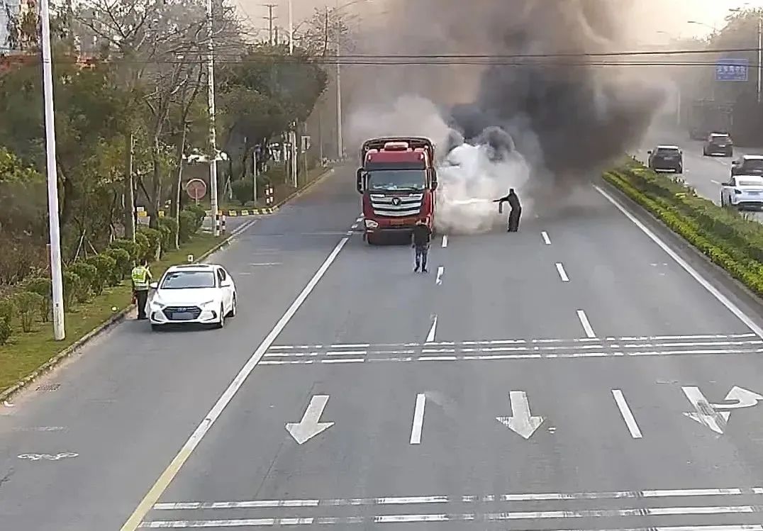 “你们别过来,我的车着火了!”今年2月24日17时10分许,一声喊叫引起了正在附近执勤的陈建的注意。陈建顺着声音跑过去,只见一辆货车浓烟滚滚、火光频现。