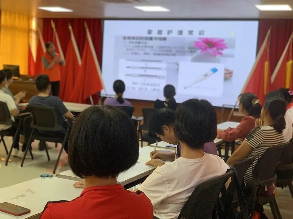 随后,黎老师给大家介绍养老护理的基本知识,从血压计怎么测量、老年人的饮食注意事项、老年人疾病预防和护理、体质分辨、护理手法等方面展开教学。