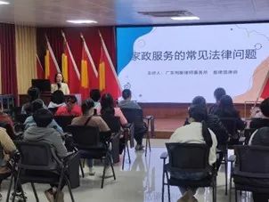 此次法律公益讲座,邀请了广东利衡律师事务所黎绮琪律师作为主讲,黎律师结合常见的家政法律纠纷,通过大量鲜活的案例,重点讲解了在家政服务过程中物品损坏如何赔偿、家政服务过程中被陪护人员受伤了如何维权、劳动合同签订、财产损坏等方面内容,从家政服务人员及雇主(消费者)两个角度,引导参课人员学会运用法律武器维护自身合法权益。
