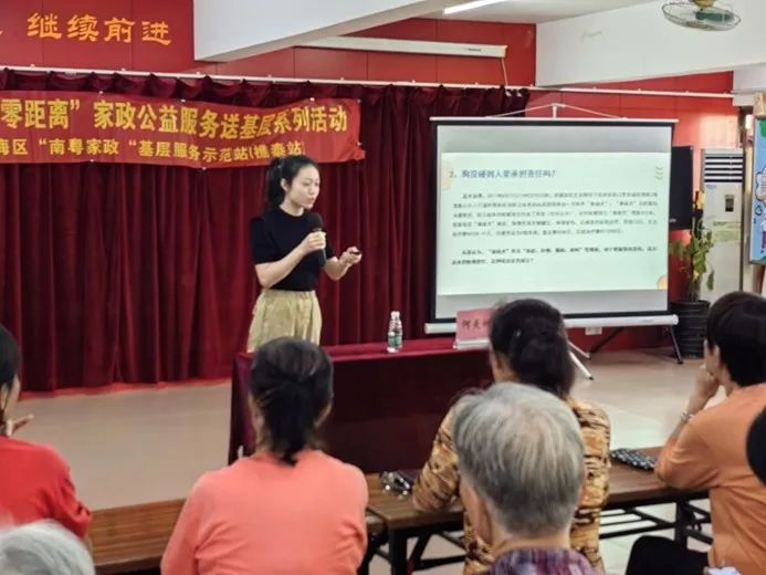 2023年10月25、27日,在佛山市三水区人力资源和社会保障局的指导下,“四心家政”项目联动佛山市南海区“南粤家政”基层服务站(樵泰站)开展“惠民零距离”家政公益服务送基层系列活动,本次主要以“家庭餐制作”“家政服务中雇主法律风险防范”为主题。