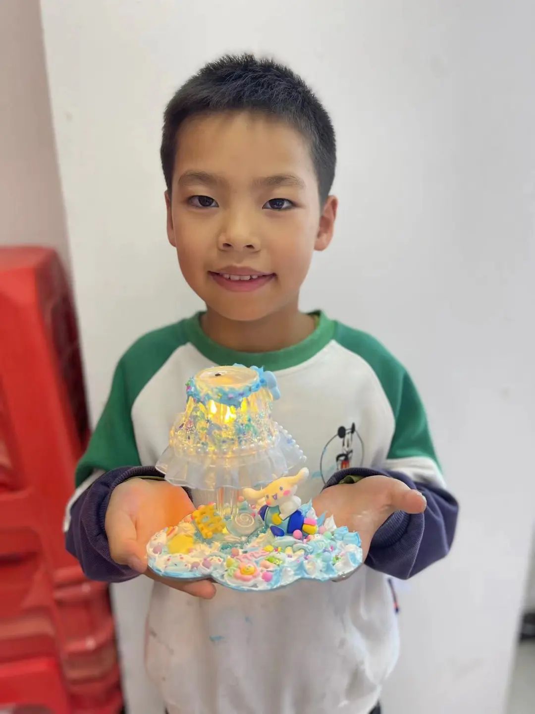活动期间,亲子们充分发挥自己的想象力, 用奶油胶挤出自己想要的形状,用小饰品精心地装饰着奶油胶台灯和手机支架。相邻的朋友相互帮忙,交换奶油胶搭配不同的颜色,经过一番努力,一个个呆萌“艺术品”做好啦。亲子们看着自己亲手制作的奶油胶“艺术品”开心不已,纷纷拍照留念。