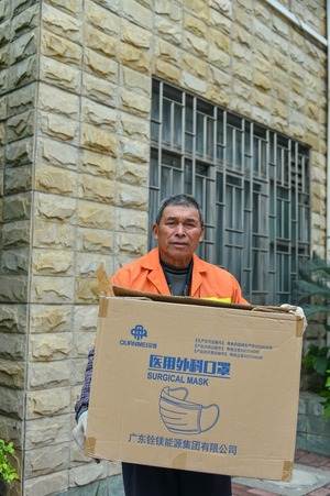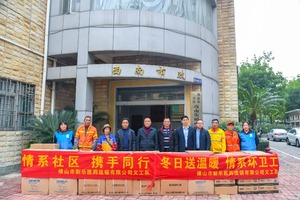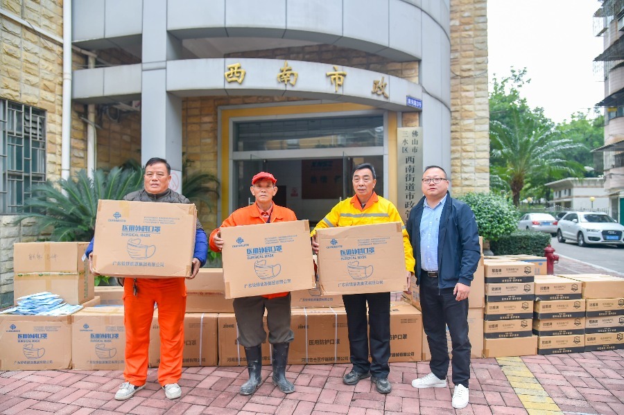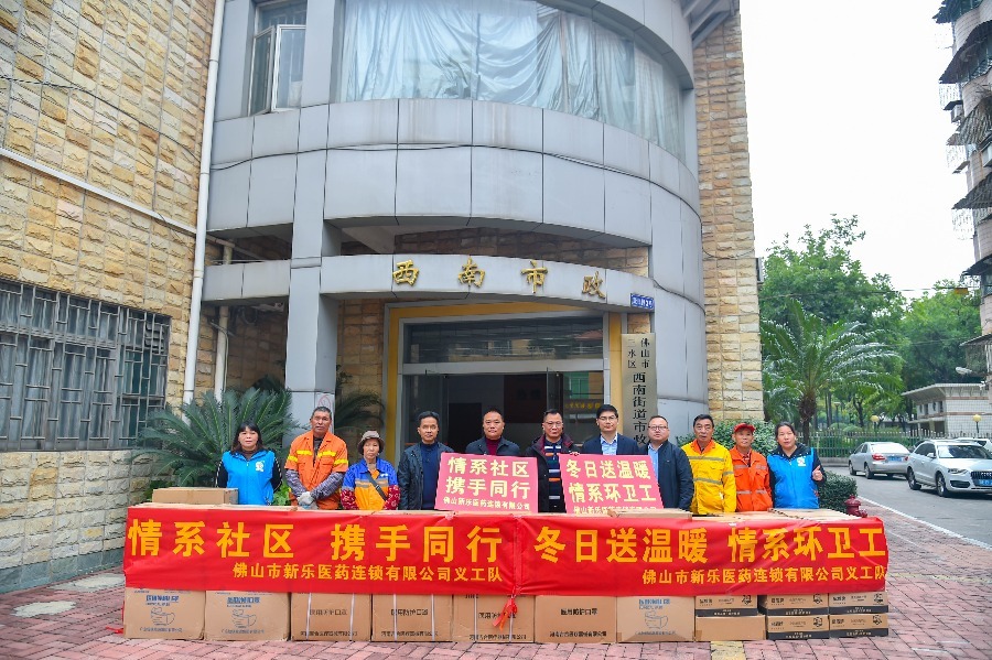为改善环卫工人的工作条件,保障环卫工人的合法权益,提高环卫工人工作的积极性。佛山市新乐医药连锁有限公司为一线环卫工人发放了酒精、口罩等劳保用品 。
