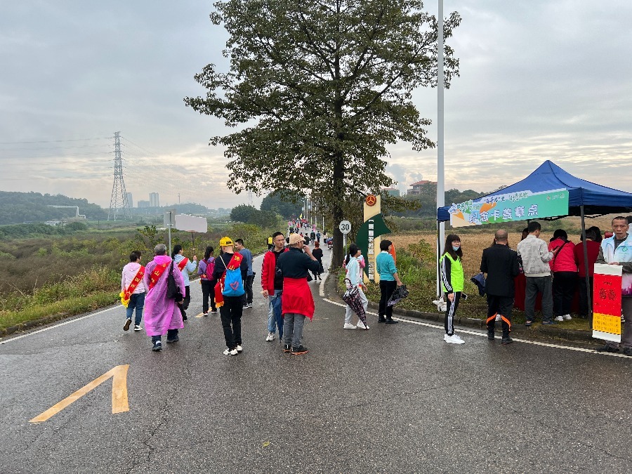 一大早,徒步爱好者就在在西江公园龙舟广场人头攒动,外国友人也参与前来,在简单而隆重的佛山市“百千万工程”乡村振兴党建活动线路(三水区西江十里画廊)授旗仪式后,随着汽笛声响亮响起,浩浩荡荡的徒步队伍精神抖擞,“百千万”工程典型镇方阵、特色文创专业镇方阵、绿美白坭方阵、新型储能新高地、白坭西江十里画廊方阵、新白坭人方阵等20多个个特色方阵同步出发,陆续穿过起点拱门,队伍宛若长龙。