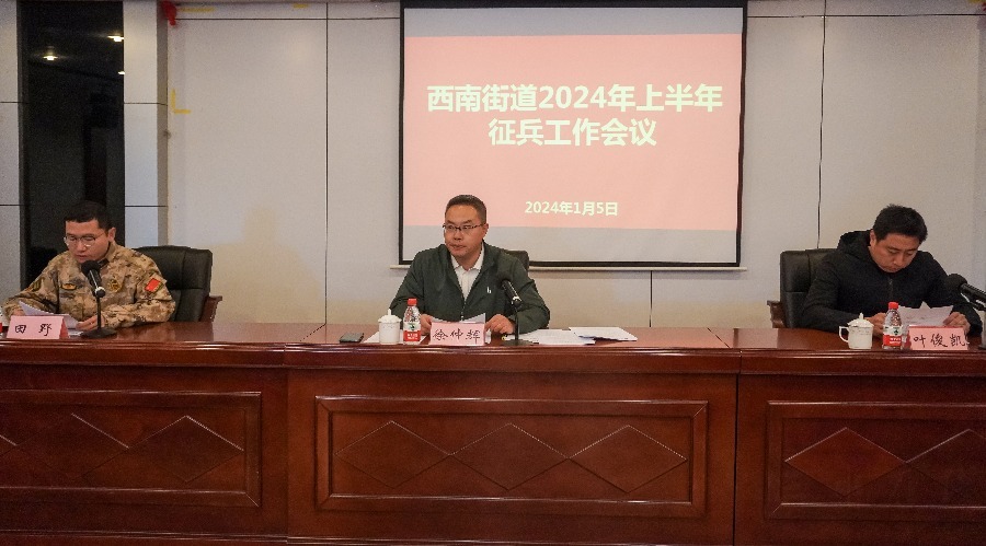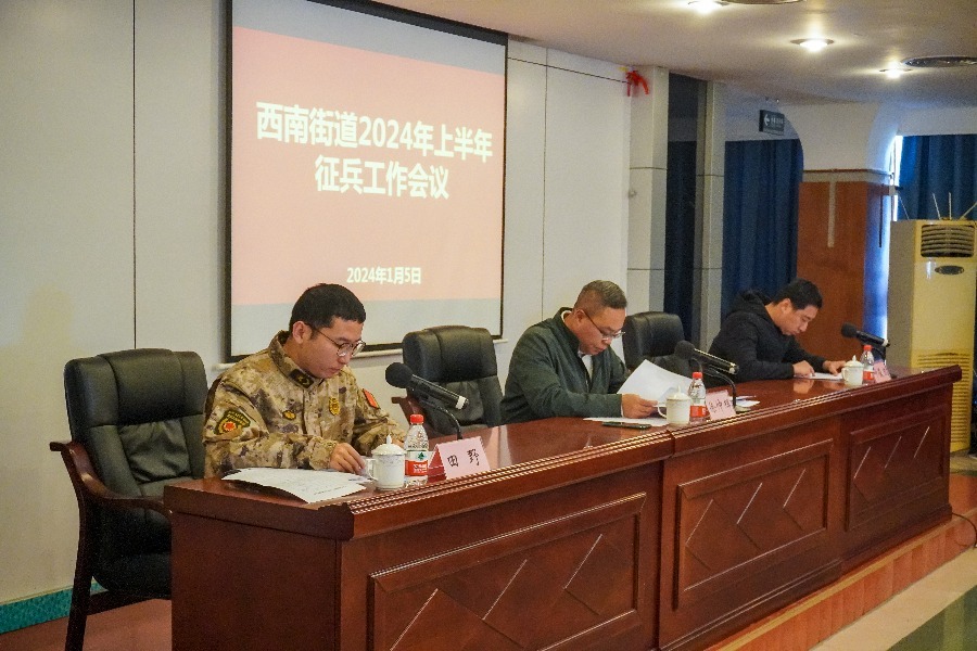 根据上级关于征兵工作的有关精神,结合我街道实际,今天召开西南街道2024年上半年征兵工作会议,出席今天会议的领导有西南街道党工委副书记、办事处主任徐仲辉同志,街道征兵工作领导小组相关领导,以及西南派出所有关领导、各办(所)正职、各村(居)委会书记(主任)和民兵营长、街道征兵工作队全体成员。
