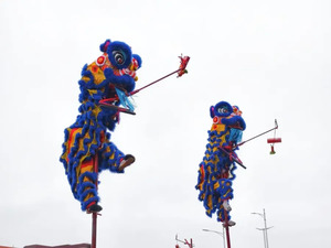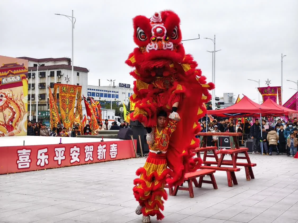 佛山醒狮是中国传统文化的重要组成部分,醒狮象征着一种坚持不懈、勇于开拓、不畏艰险的民族精神。现场不仅有惊险的高桩狮表演、精彩的龙狮综合表演,还邀请范湖小学、轩金龙狮武术队、乐平镇16支本地狮队前来助庆。