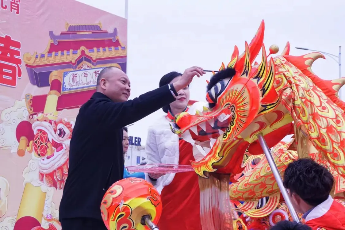 乐平嘉洲广场外,人声鼎沸、热闹非凡。当天,乐平镇举办醒狮点睛仪式,寓意虎虎生威、事业兴旺、吉祥如意,仪式吸引了不少市民和职工围观。
