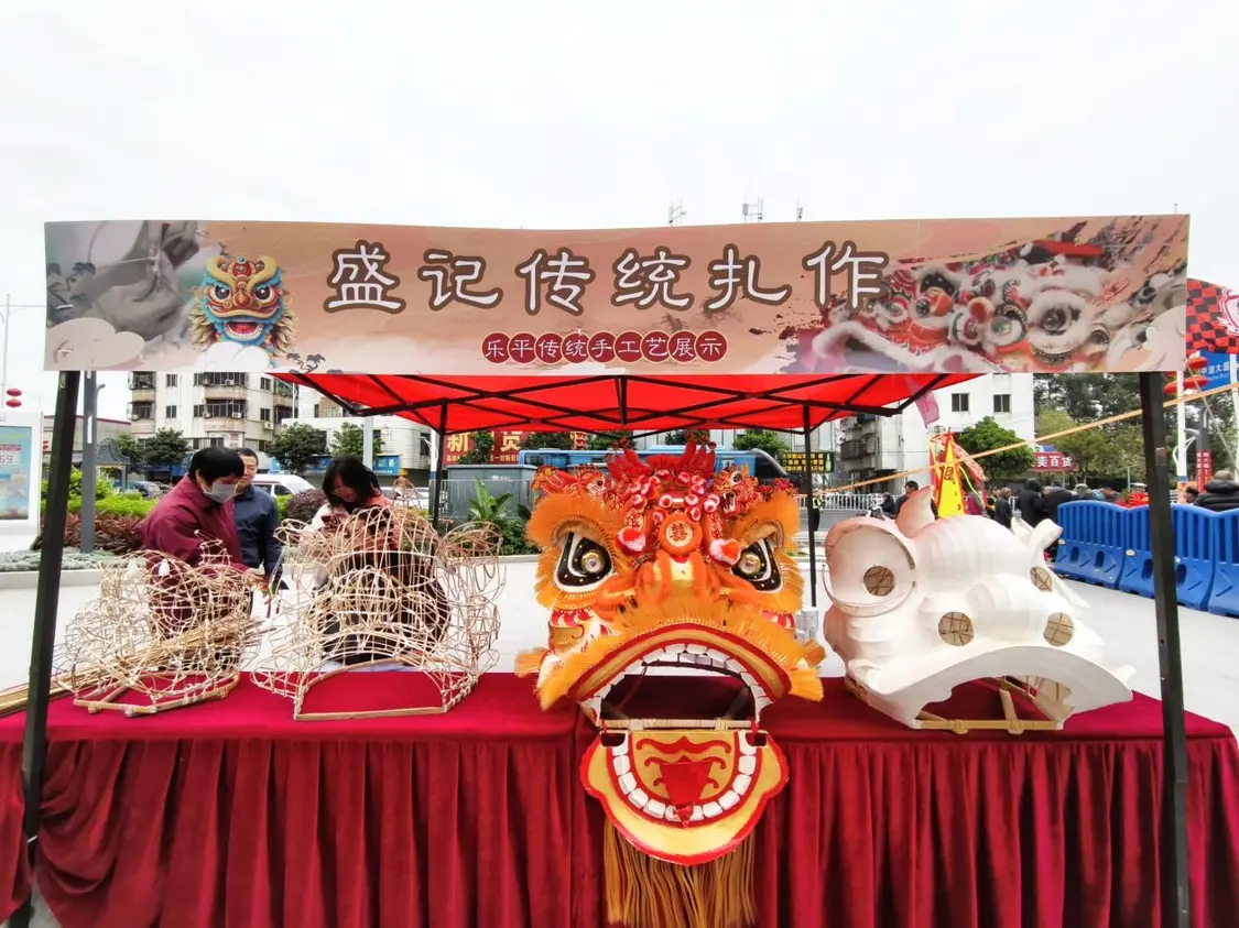 16支本地狮队同台表演,现场十分墟撼。活动邀请了保安华兴达醒狮队、范湖上巷村醒狮队等16支训练有素的本地狮队上台表演,值得一提的是,现场还邀请了本土传统的扎狮头手工艺人现场展示扎狮头技艺,尽显乐平深厚醒狮文化氛围。随着锣鼓声响起,多只醒狮在高桩上舞动,或昂首挺胸,或摇头摆尾,动作神态惟妙惟肖、神气十足。