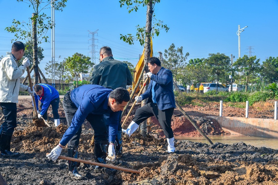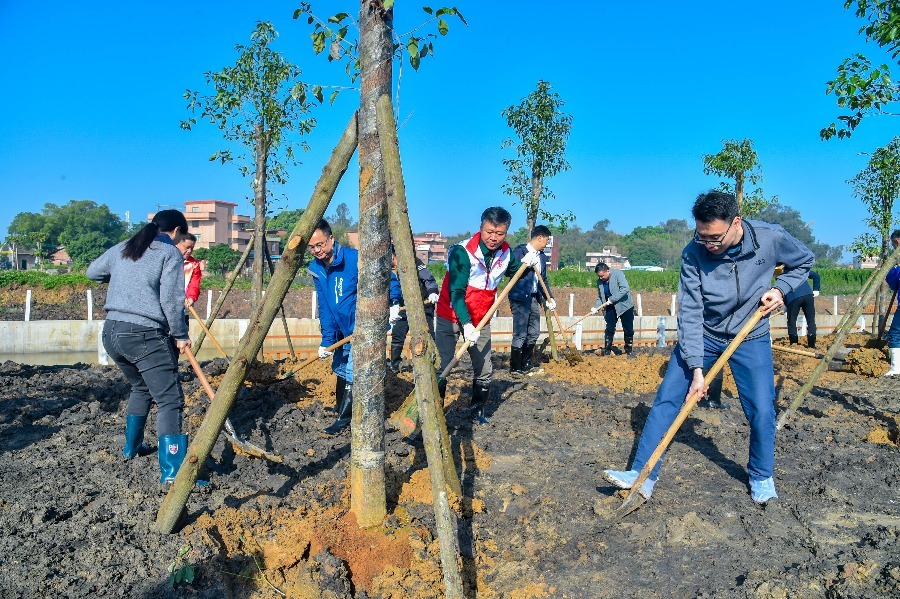 为贯彻落实习近平生态文明思想,全面落实省、市、区关于深入推进绿美广东、绿美佛山生态建设及“百县千镇万村高质量发展工程”的工作要求,全面实施全民爱绿植绿护绿行动,3月12日植树节当天,西南街道林长办组织两级林长、人大代表、企业代表和五顶岗村委到水都饮料食品产业园塘岗涌边开展全民义务植树活动。