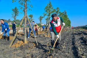 上午10时,街道办事处主任、党工委副书记、林长徐仲辉,街道人大工委主任、副林长韩志勇,街道党工委副书记、副林长叶俊凯等领导,带领辖区内人大代表、两级林长代表、企业代表等60余人来到塘岗涌边,为水都园区植树添绿。大家挥锹铲土、培土围堰、提水浇灌、扶树正苗,合力栽下60多棵香樟树,放眼望去,一棵棵新栽树苗挺立在三月的和煦春风里,一片勃勃生机。