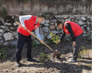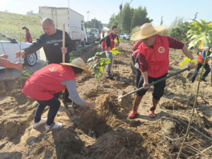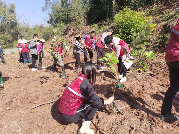 ▲芦苞镇挂钩干部参加刘寨村植树活动。
