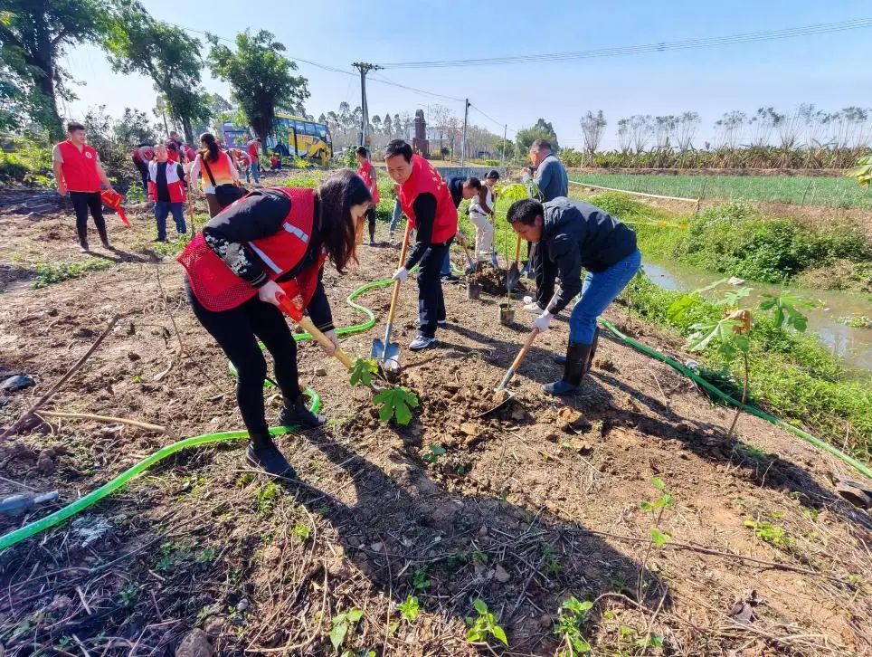 本次活动以党建引领乡村绿化打造和美乡村植树为目标,通过开展“绿美三水我争先”党建结对主题党日活动、鼓励各类群团助力绿化乡村建设,推动村居与机关事业单位、优质“两新”企业结对共建,推动充分发挥党组织优势,统筹用好各类资源,营造共建支部党员共同参与植绿、爱绿、护绿的良好氛围。活动中,佛山市三水区勋宇包装制品有限公司党支部、芦苞镇中心幼儿园党支部和佛山市三水东贤橡塑制品有限公司共捐赠树苗和花卉192株。