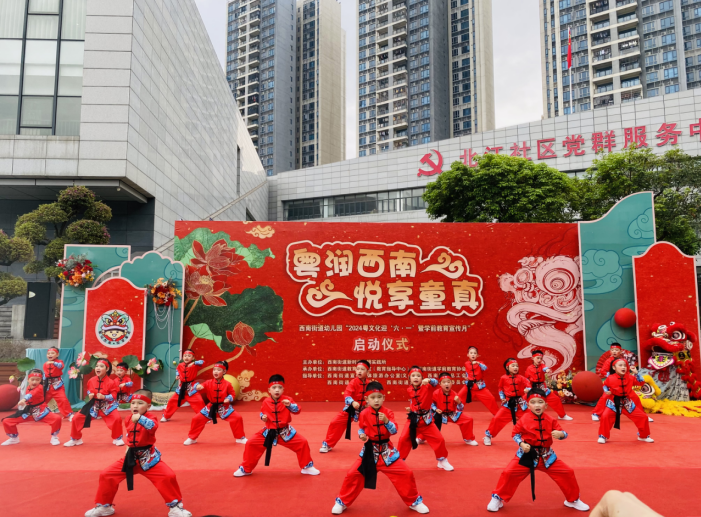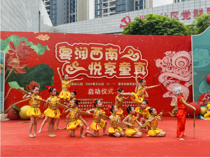 2024年3月28日上午,由西南街道新时代文明实践所主办,西南街道教育办、西南街道学前教育协会承办的“粤润西南 悦享童真——西南街道幼儿园2024粤文化迎‘六·一’暨学前教育宣传月”启动仪式在街道文化活动中心举行。西南街道办事处副主任蒋爱妍、西南街道宣文旅办(教育办)主任梁铭文、西南街道党建办副主任钱凤婵、西南街道总工会副主席陆楚辉、西南街道教育指导中心幼教专干邓影瑜、西南街道学前教育协会会长钟路军,部分幼儿园的家长、小朋友代表出席了本次活动。