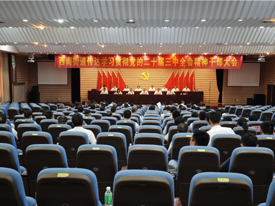 学习好、宣传好、贯彻好党的二十届三中全会精神,是当前和今后一个时期的重大政治任务。全街道上下要按照省委、市委和区委工作要求,结合西南实际,推动学习宣传贯彻取得实实在在的成效。一是提高站位,加强组织领导。各基层党组织书记要切实履行本单位学习宣传贯彻的政治责任和第一责任人责任,发挥领导带头作用,落实“第一议题”学习制度,通过集中学、自学等形式,先学一步、学深一层,带动本系统、本单位的学习贯彻不断往深里走、往实里抓。二是深入调研,提出改革思路。围绕贯彻落实党的二十届三中全会精神,各单位要结合西南实际,深入园区、企业、村居、学校等一线开展专题调研,努力形成一批务实管用、针对性操作性强的调研成果,提出有利于改革发展的对策建议,为西南高质量发展提供有力智力支撑。三是强化宣传,抓好学习培训。党建办要认真组织开展专题培训,抓好分层次、全覆盖的学习培训计划;基层党组织要开展专题研学;宣文旅办要加强宣传舆论引导,创新宣传方式方法,精心组织好理论学习和理论宣讲,推动全会精神深入人心。